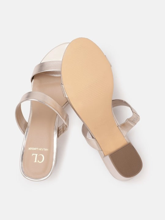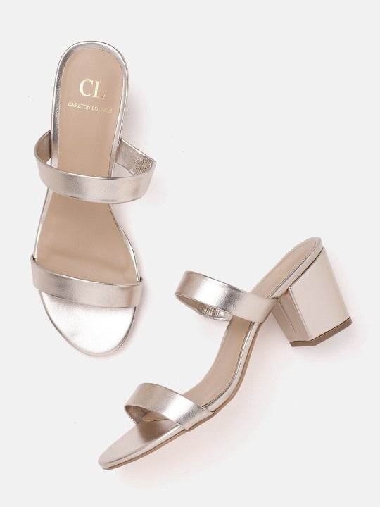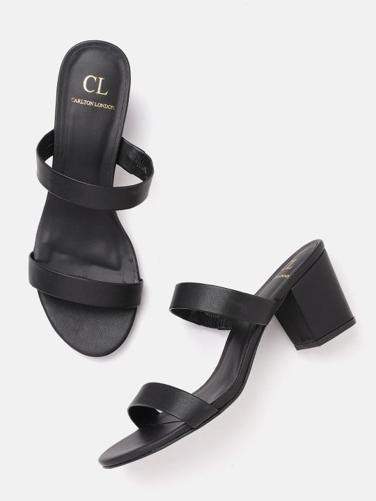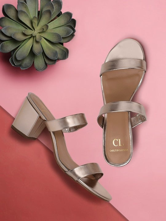 Carlton London Women's Double Strap Open Toe Block Heel Sandals