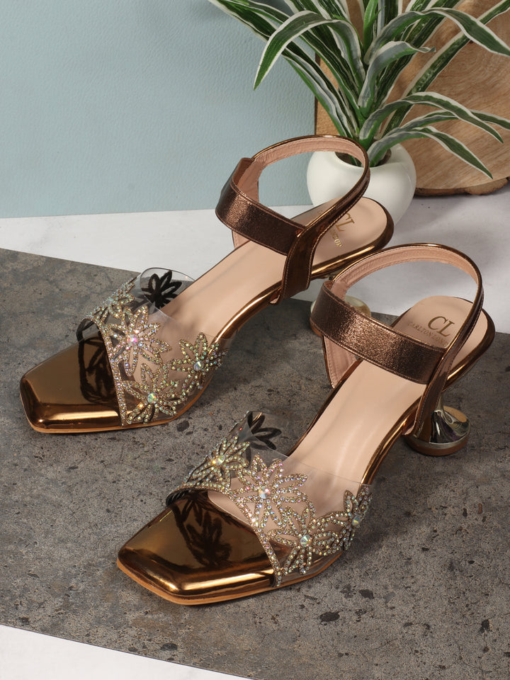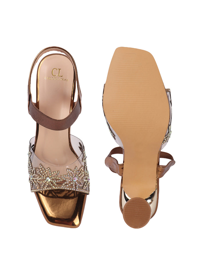 Carlton London Women's Embellished Sculpted Heel Ankle Strap Sandals