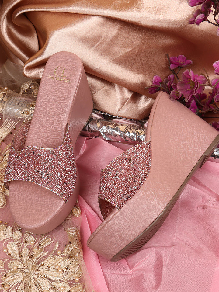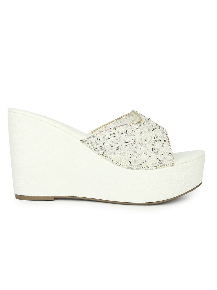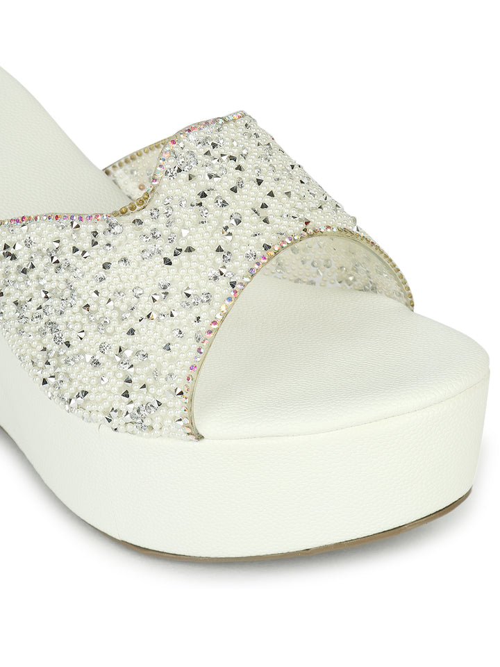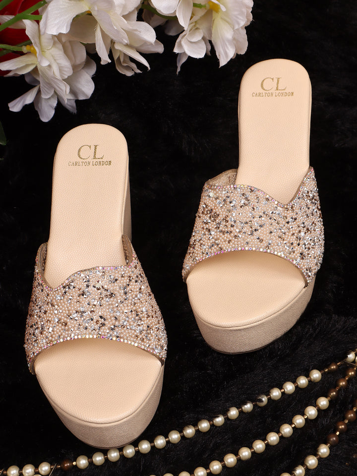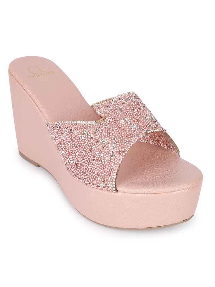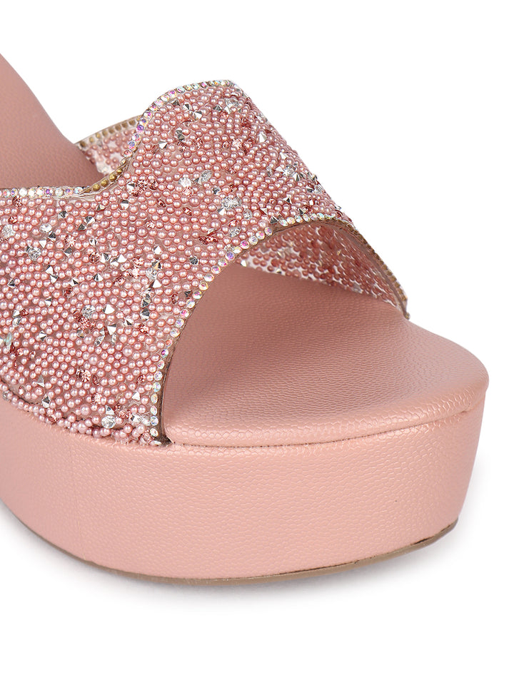 Women's Embellished Slip-On Wages Heels Sandals