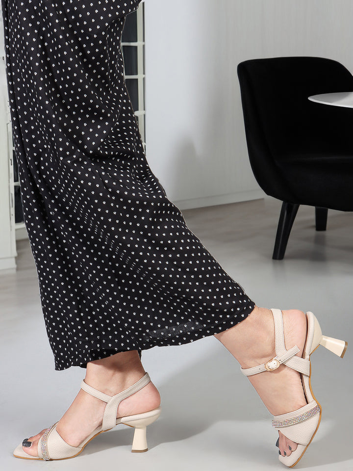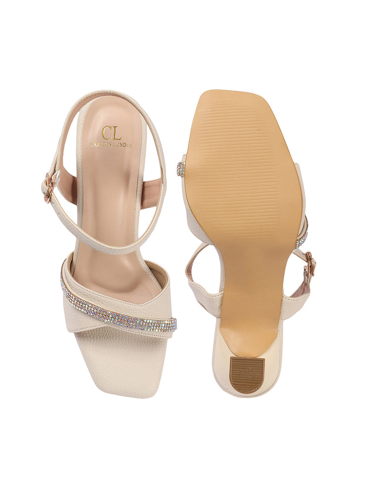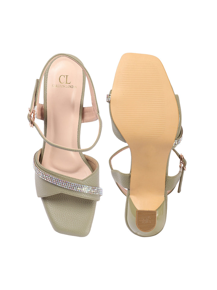 Carlton London Women's Embellished Strap Ankle Strap Sculpted Heel Sandals