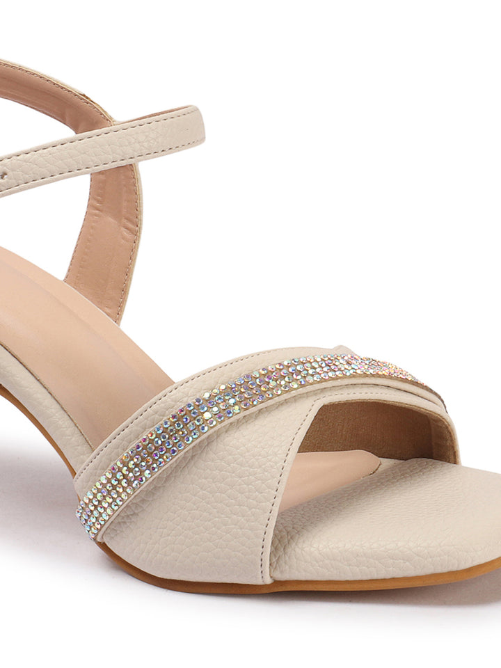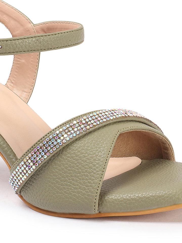 Women's Embellished Strap Ankle Strap Sculpted Heel Sandals