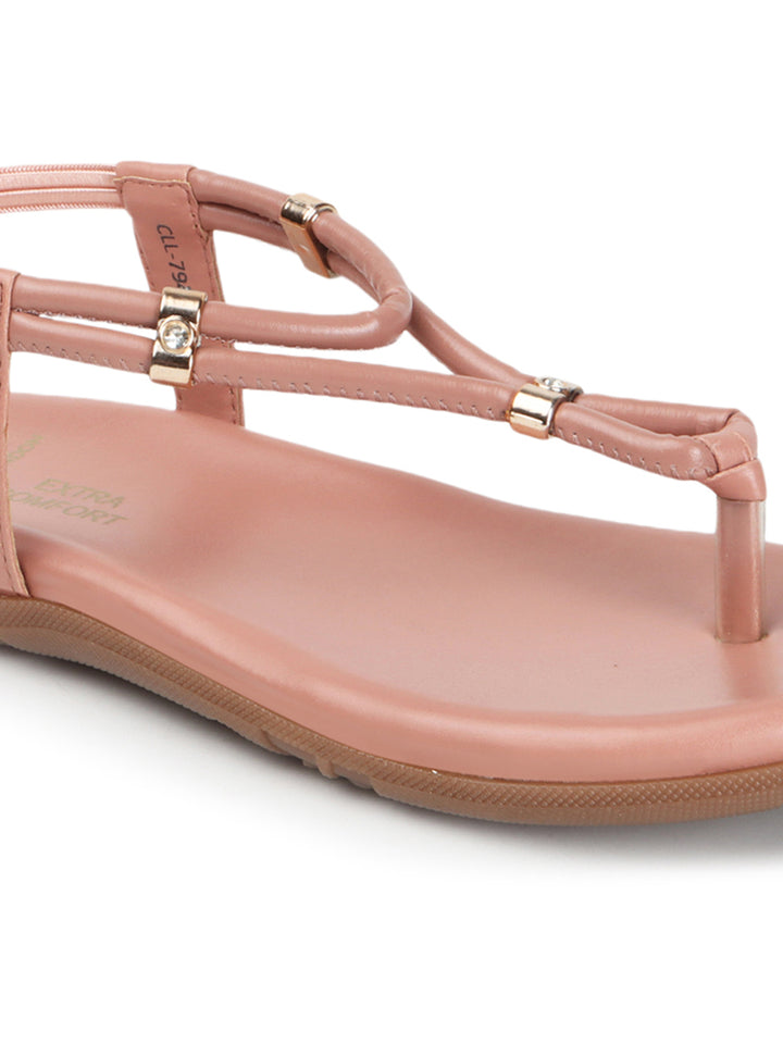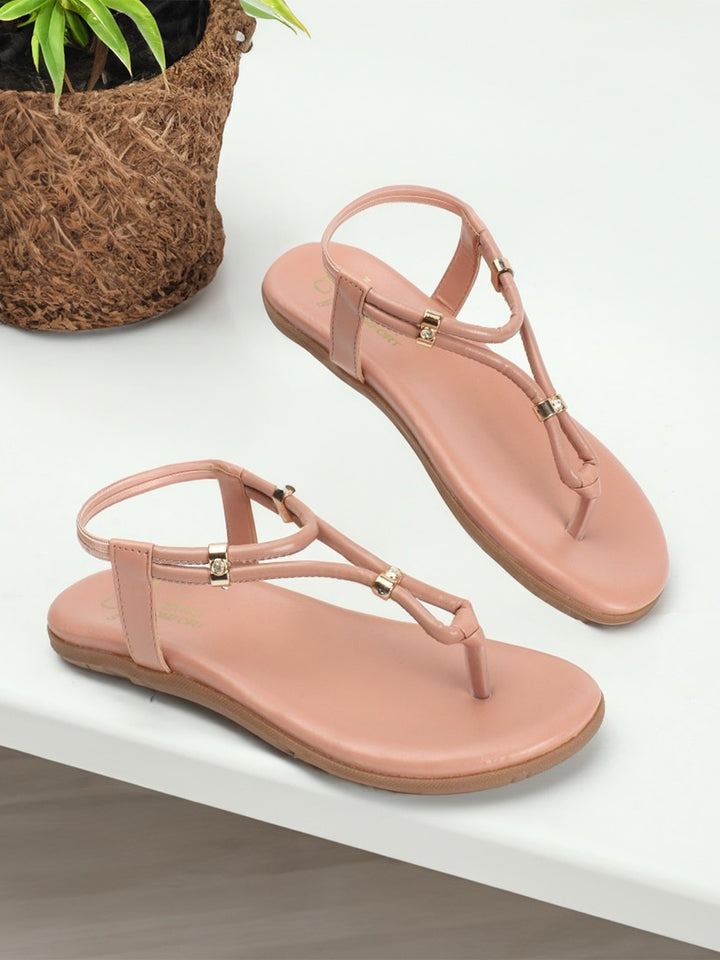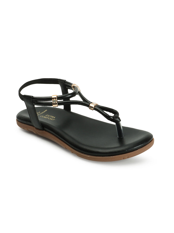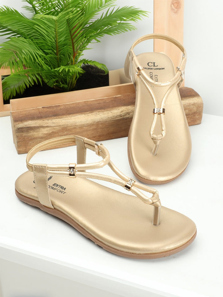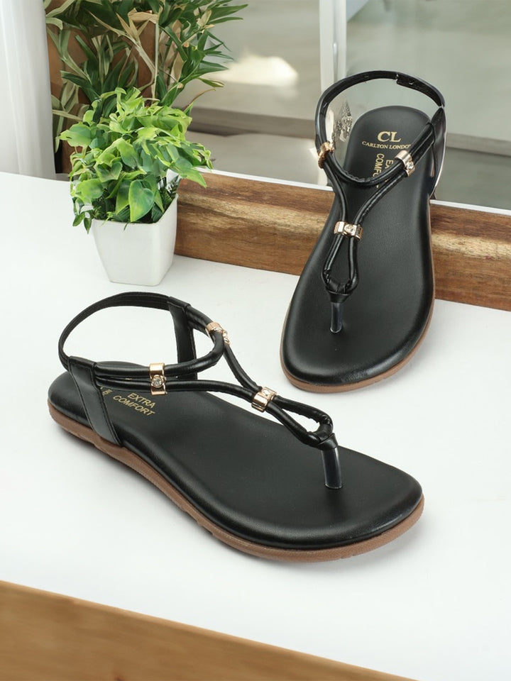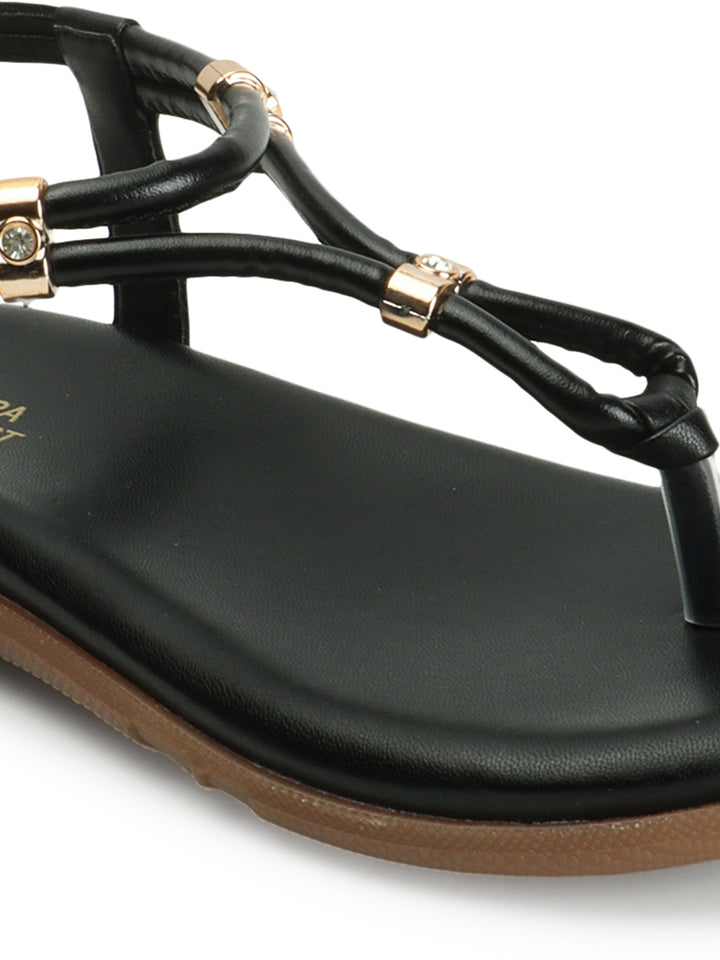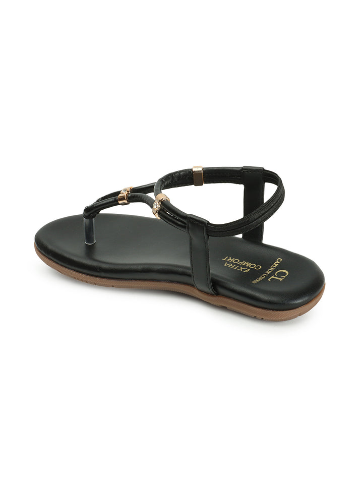 Carlton London Women's Embellished T-Strap Flat Sandals