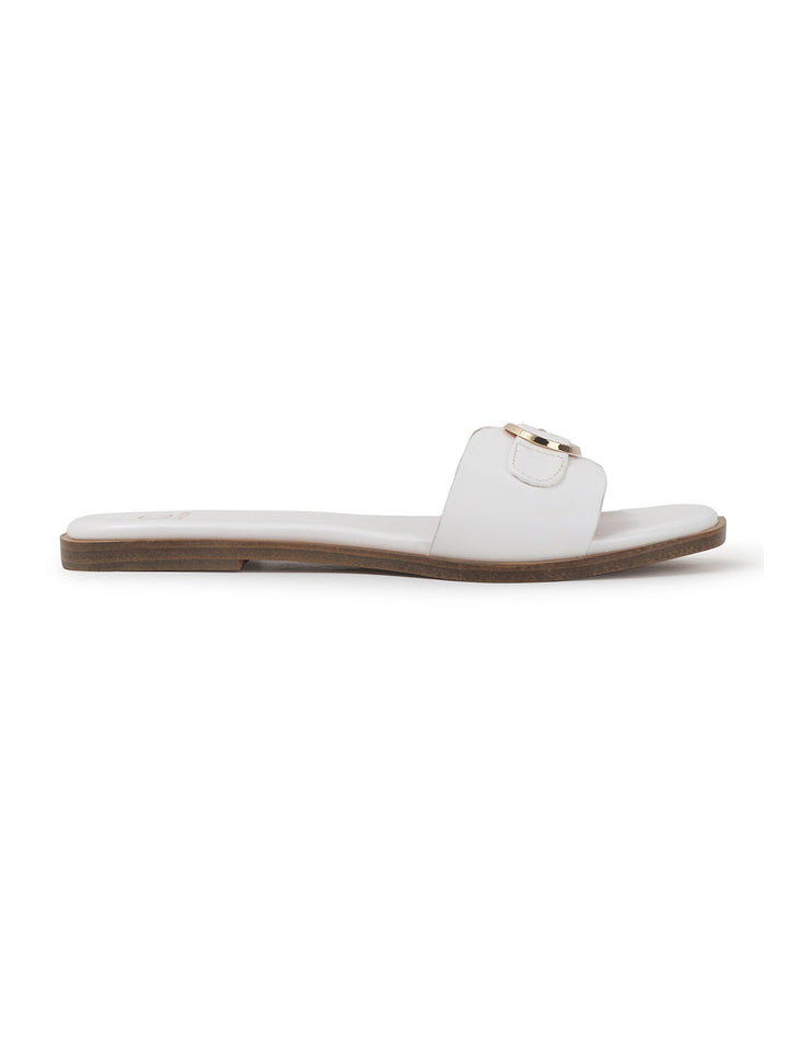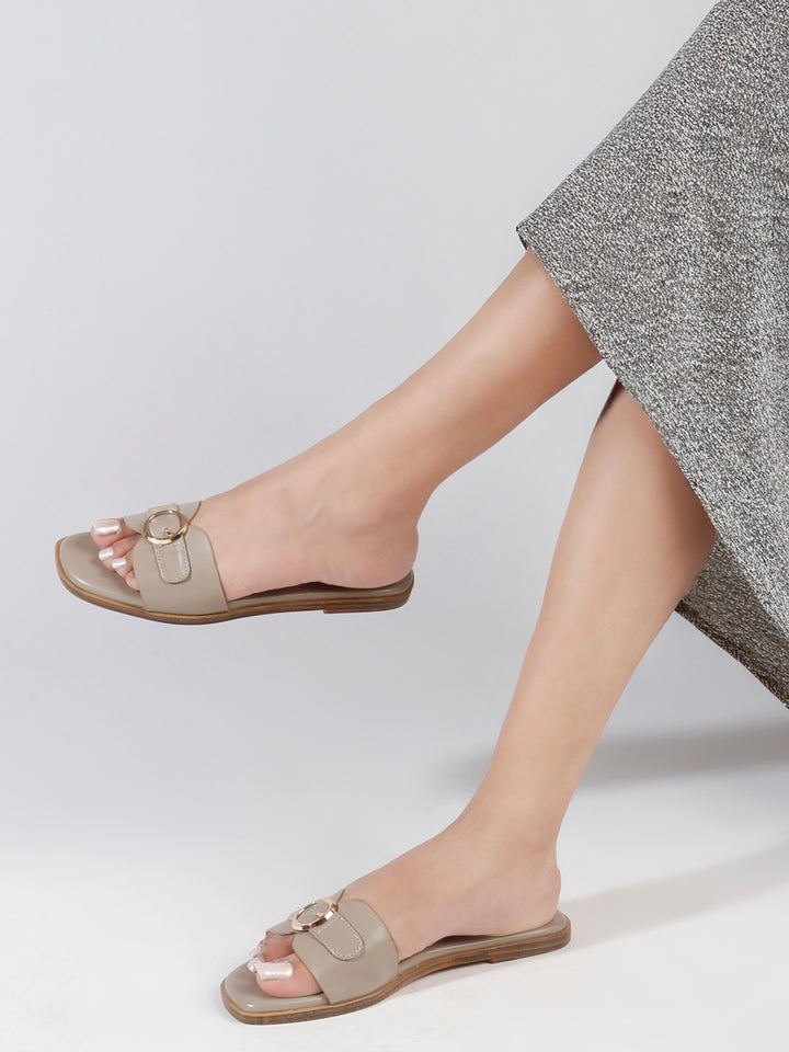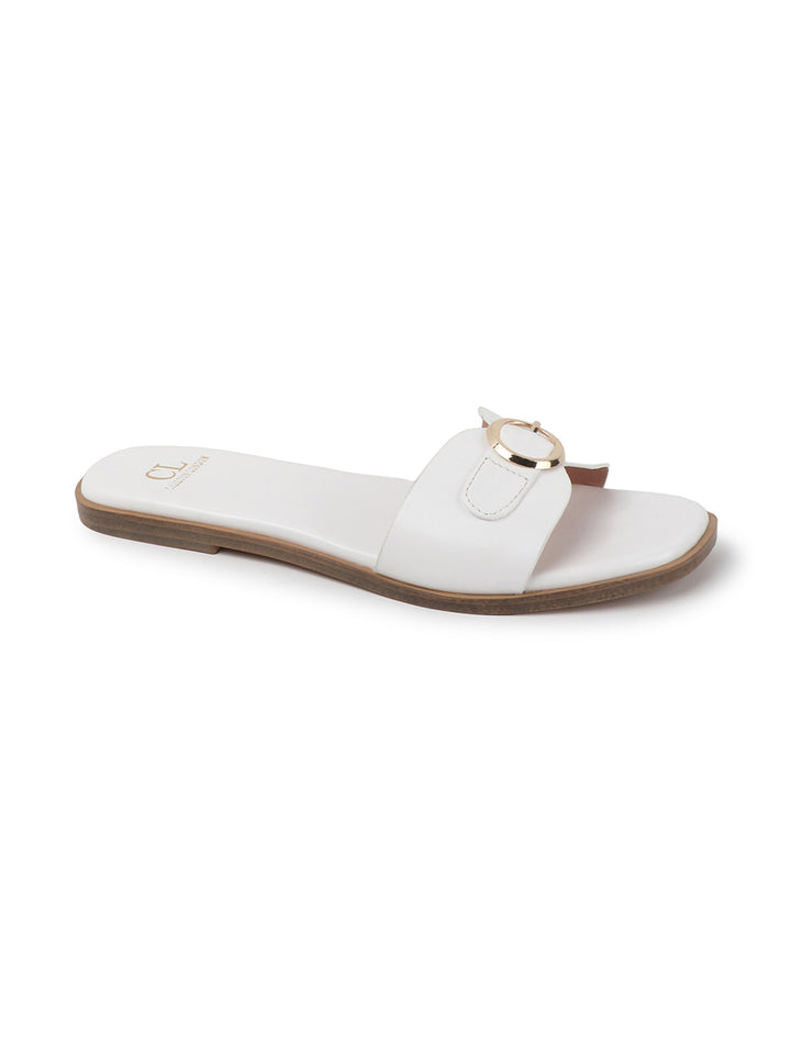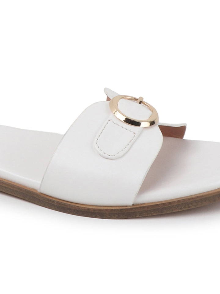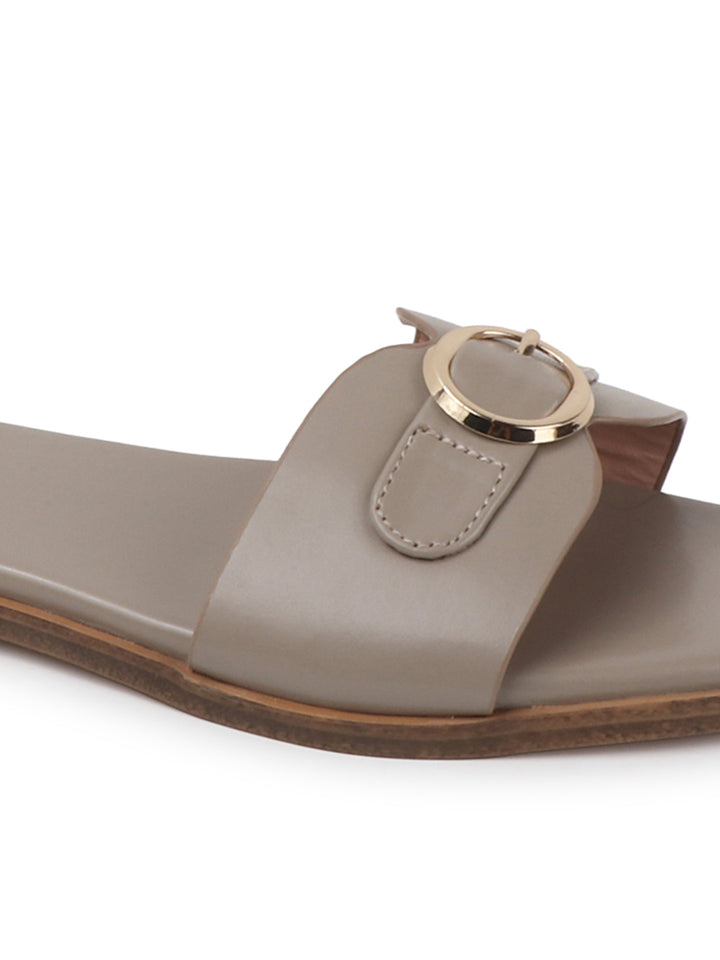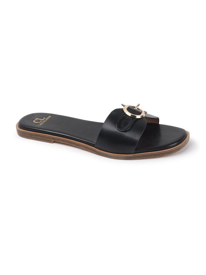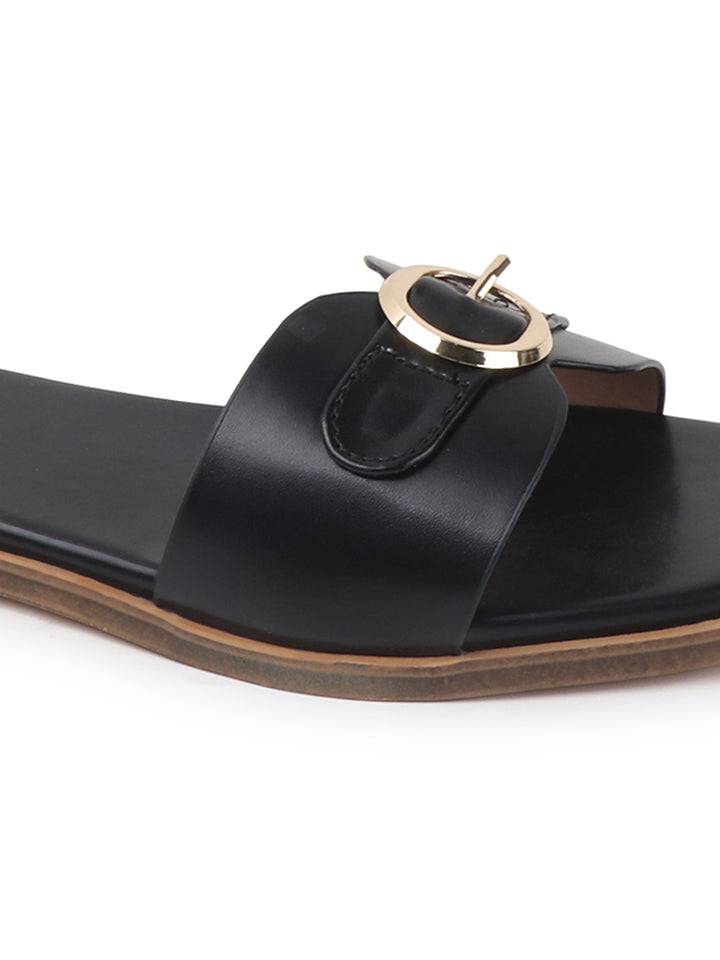 Women's Flat Slip-On Sandals with Buckle Accent