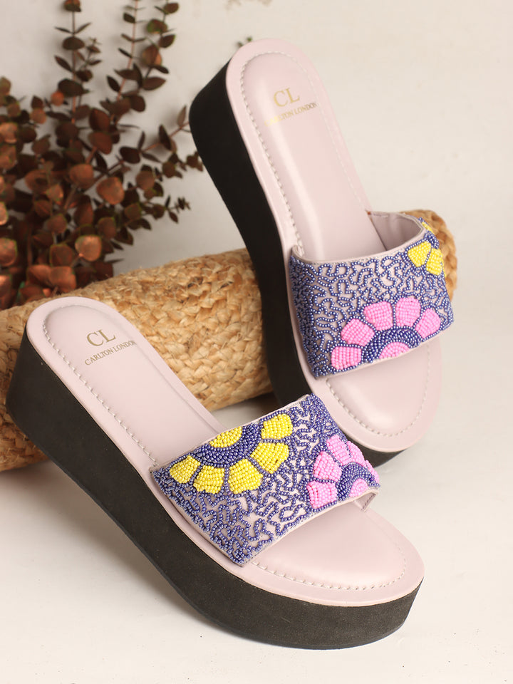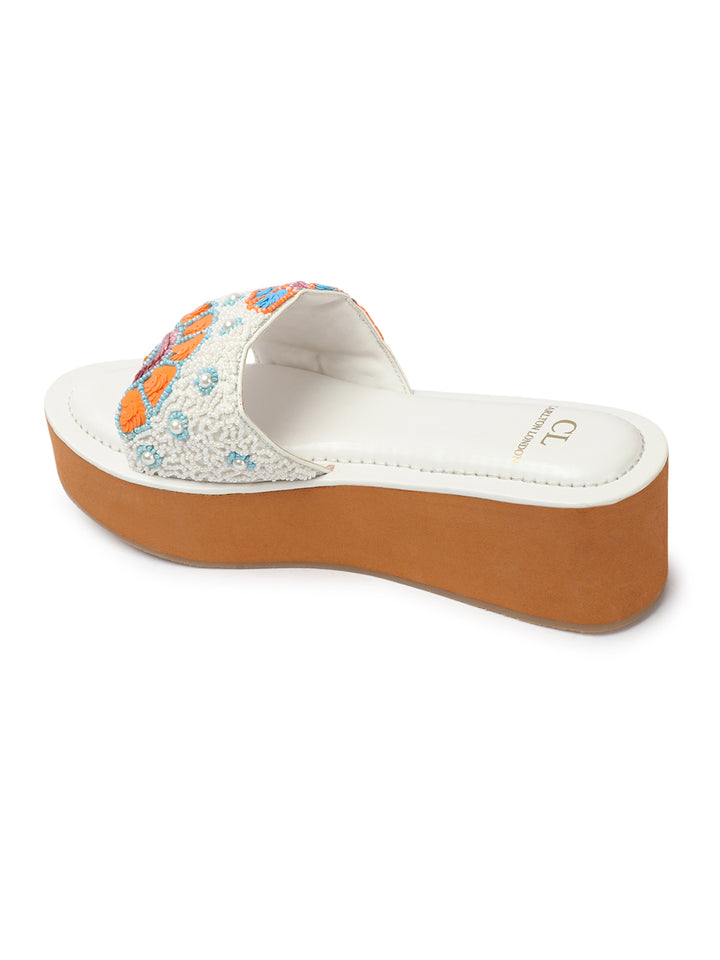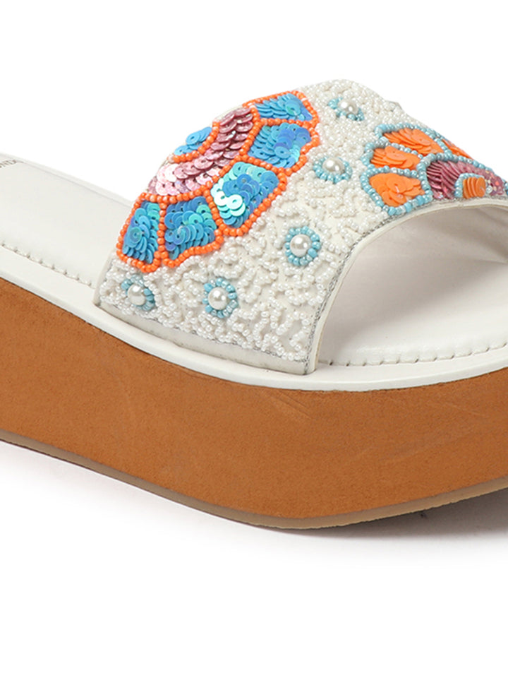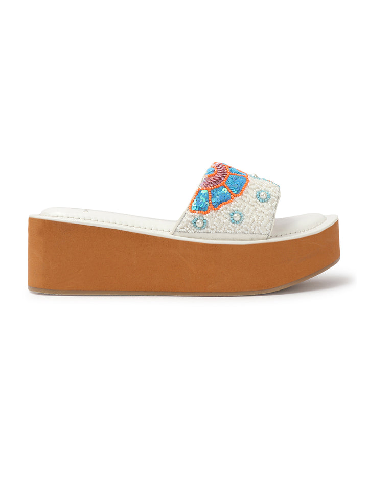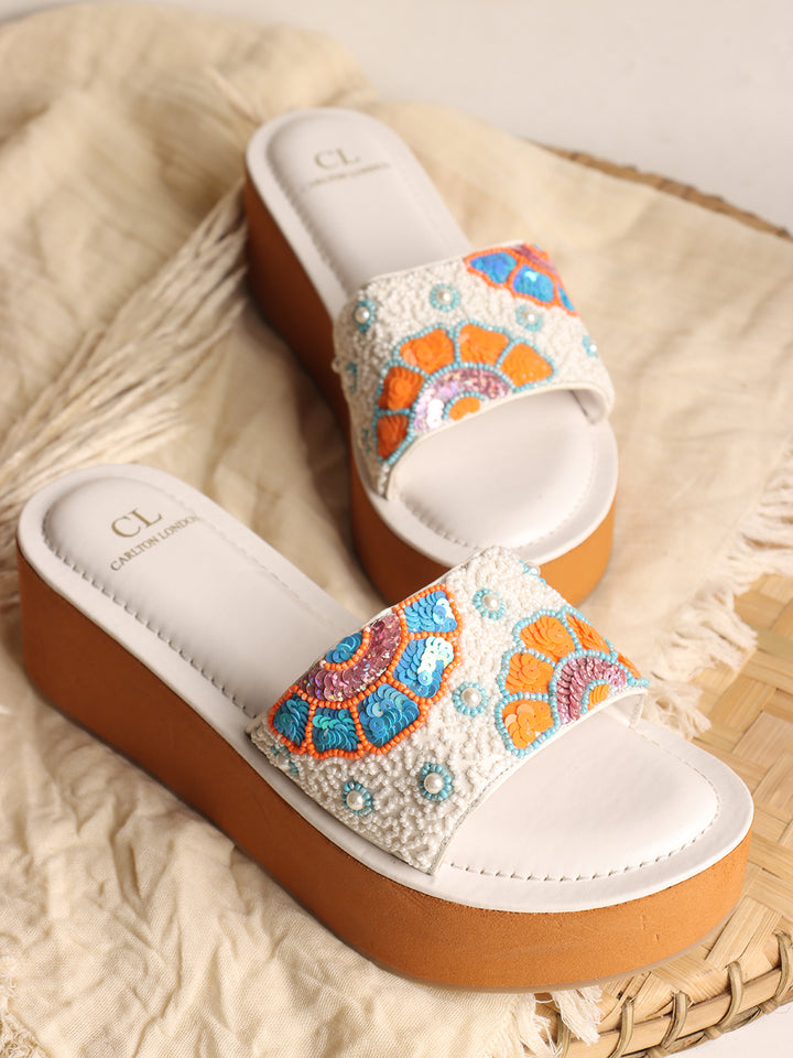 Women's Floral Beaded Wedge Sandals