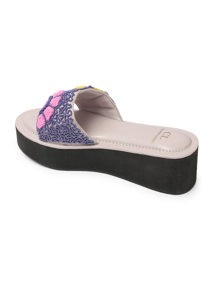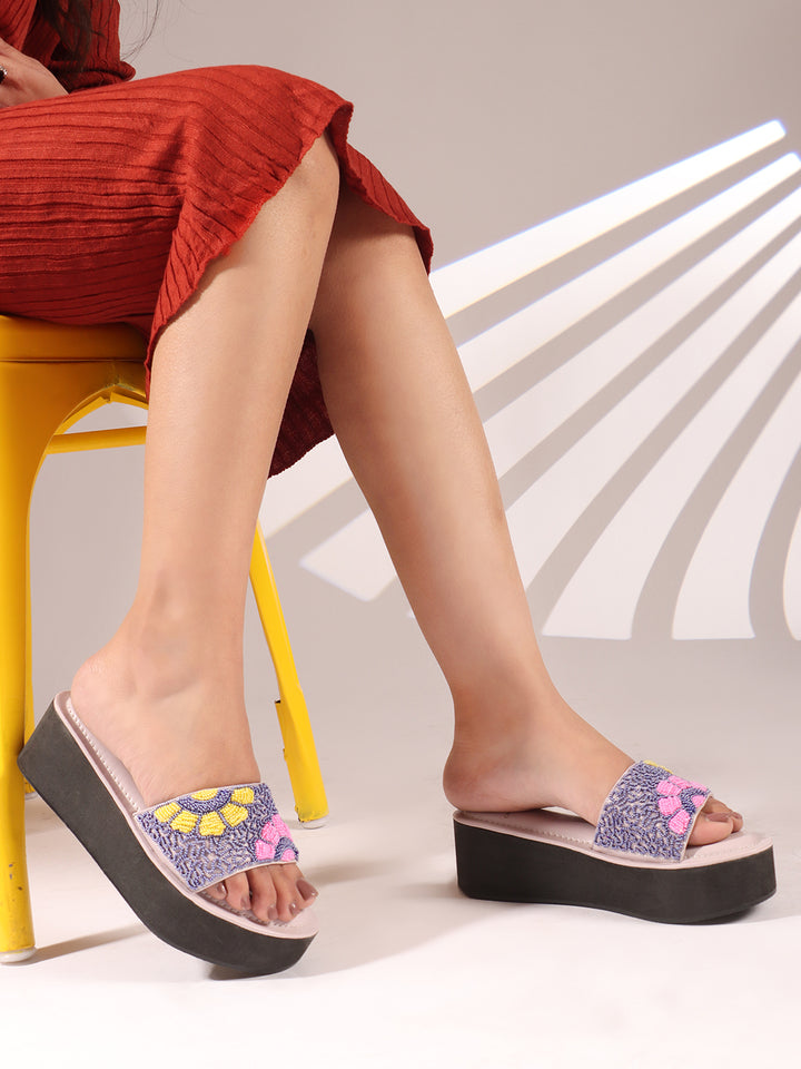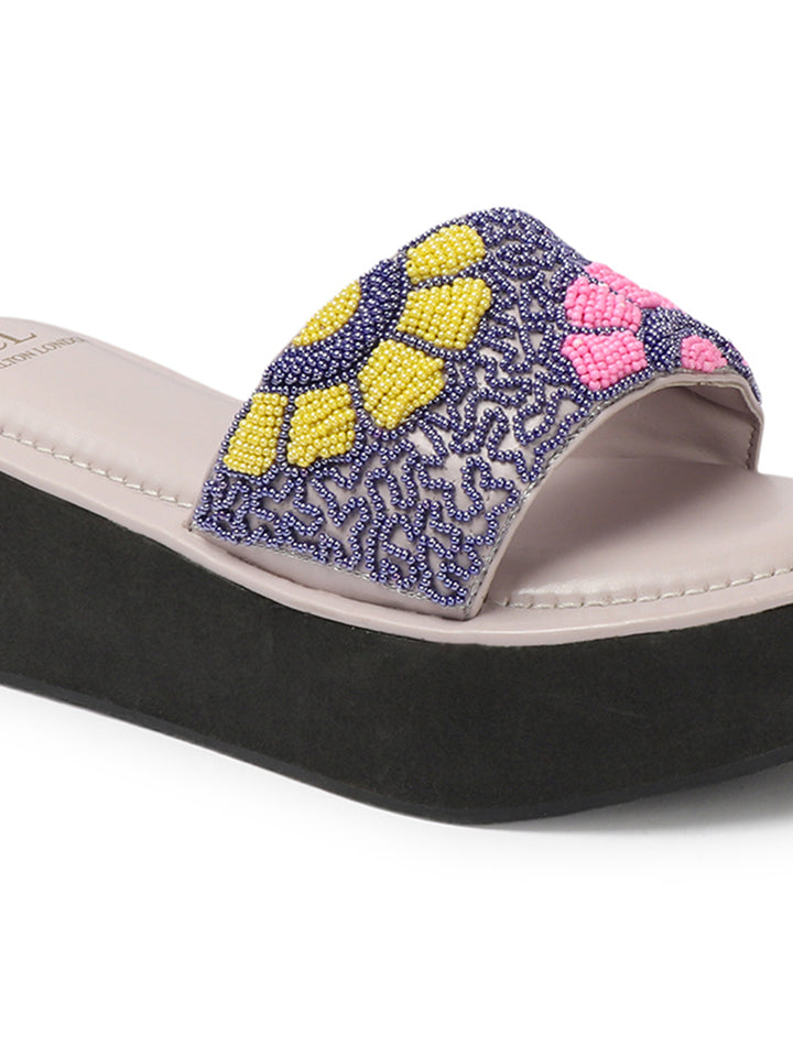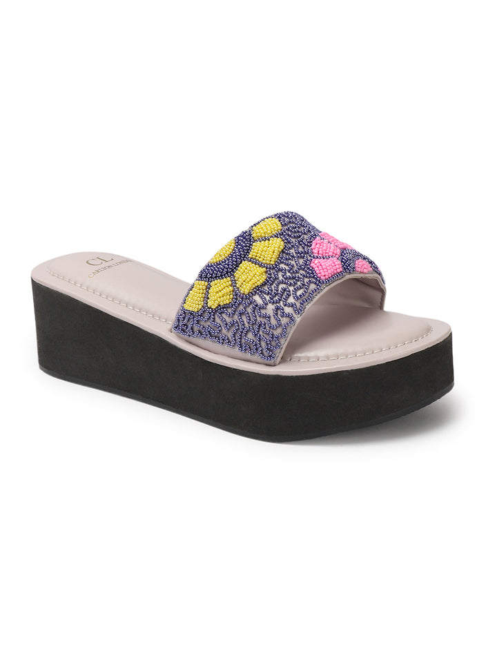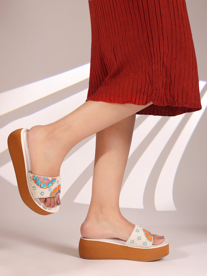 Women's Floral Beaded Wedge Sandals