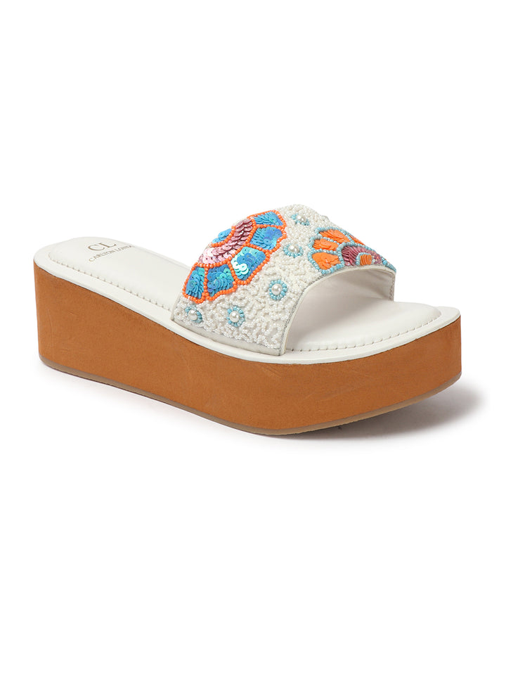 Carton London Women's Floral Beaded Wedge Sandals