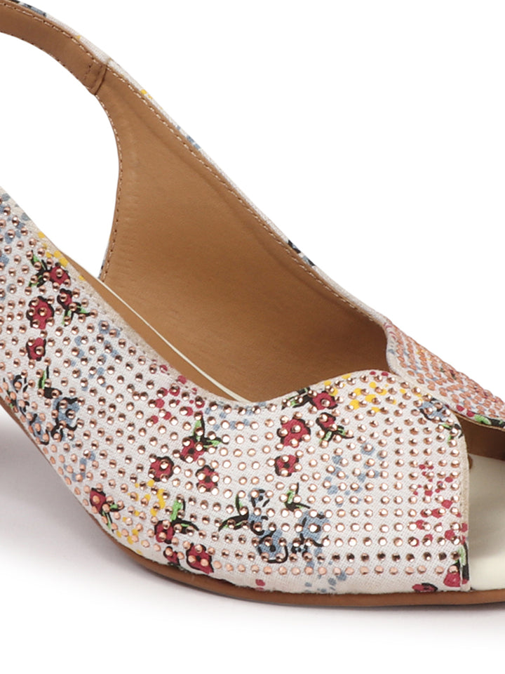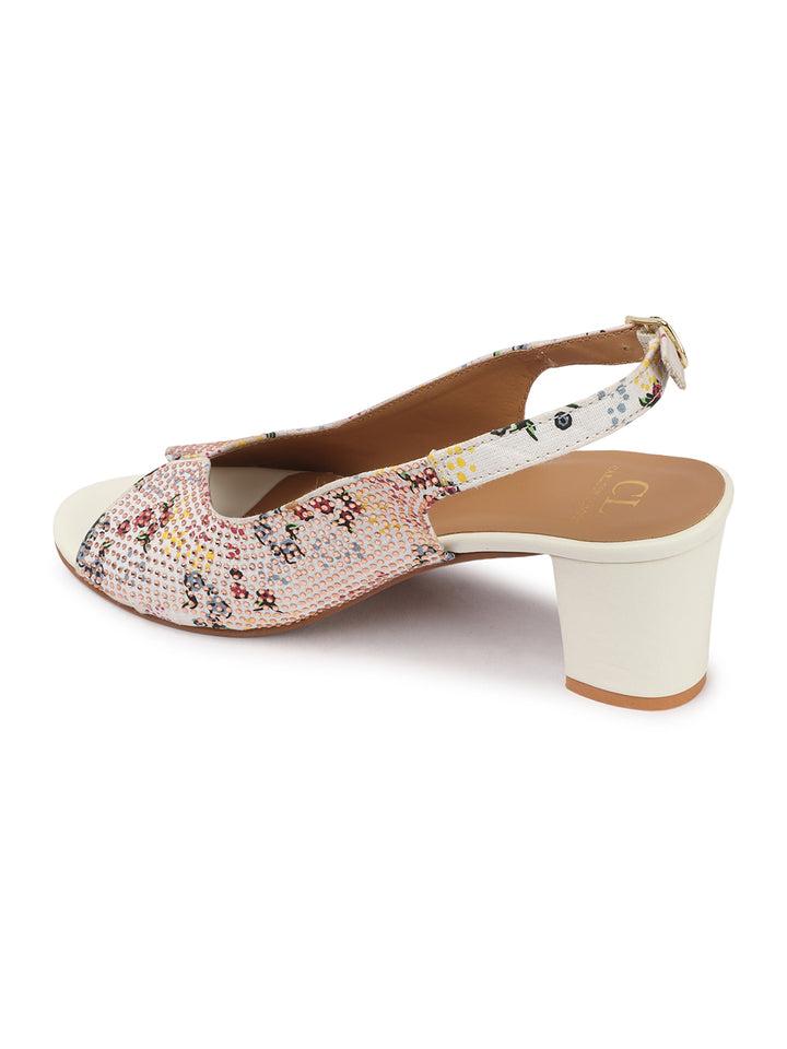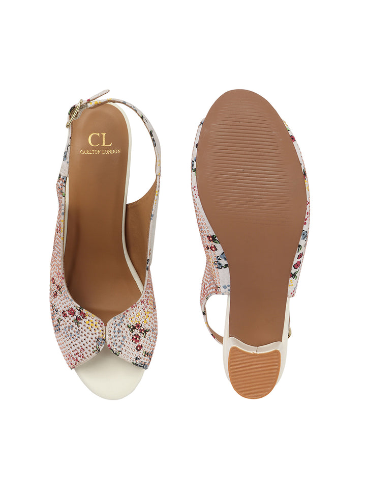 Carlton London Women's Floral Print Slingback Block Heel Sandals