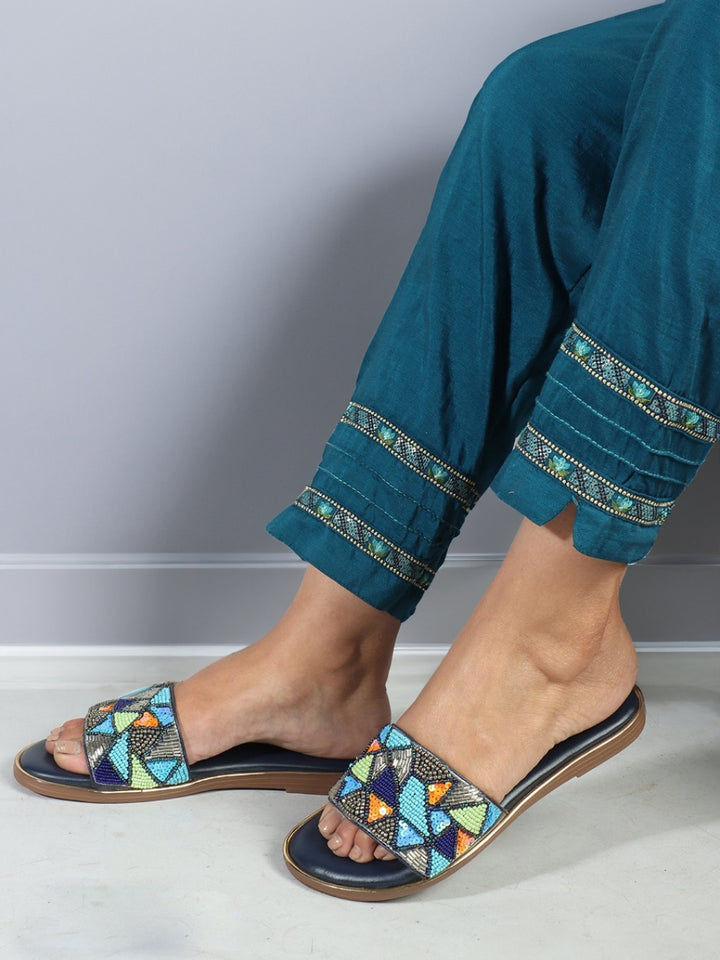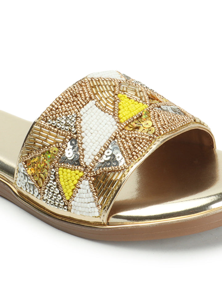 Women's Geometric Eye-Catching Beaded Flat Sandals