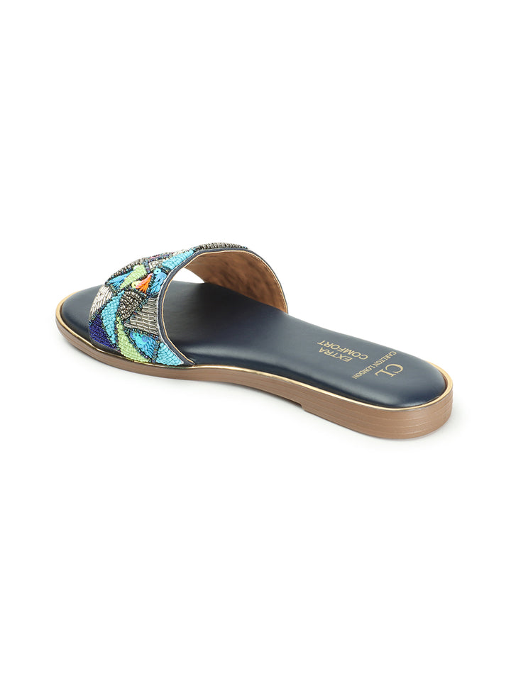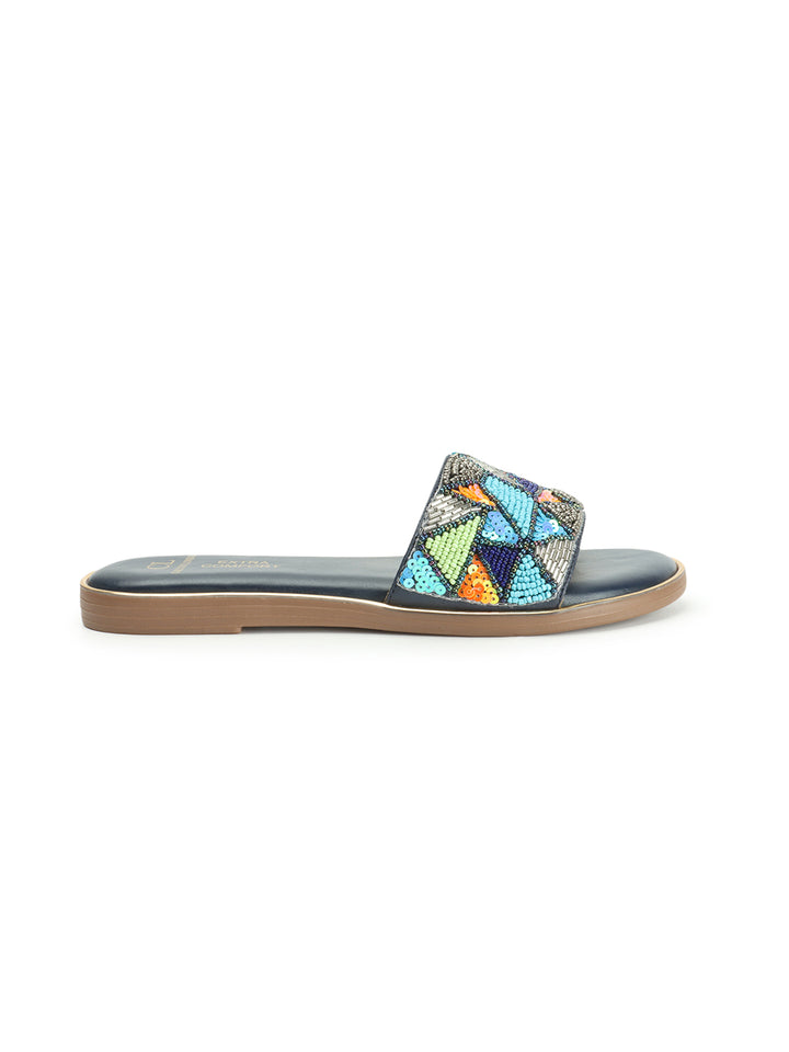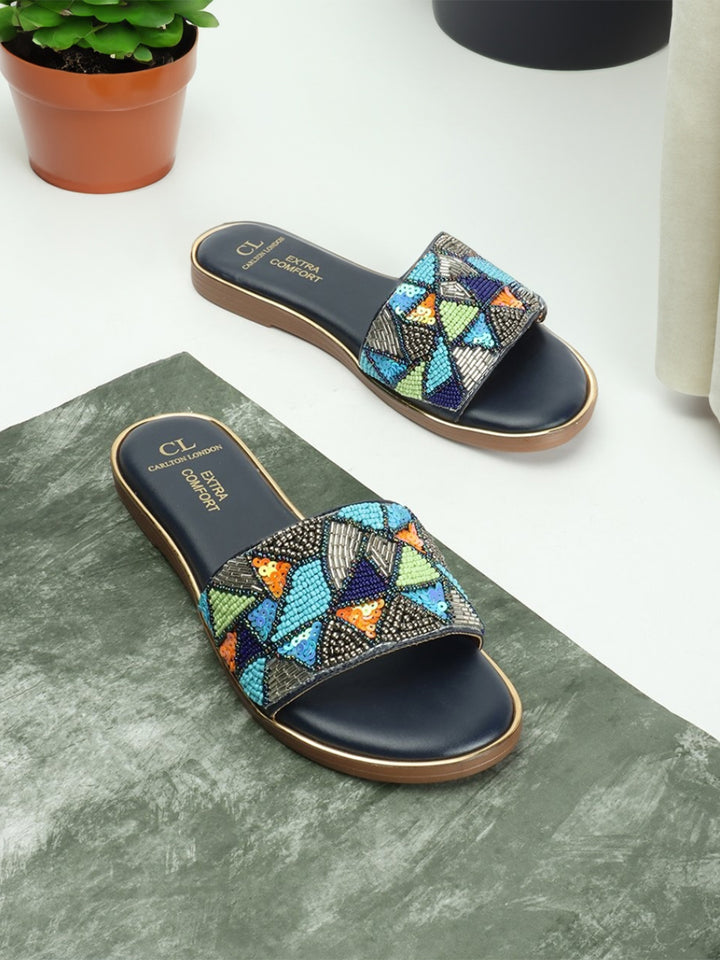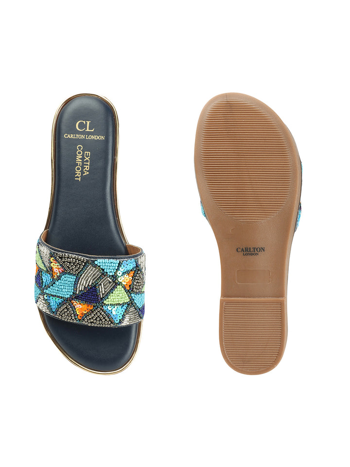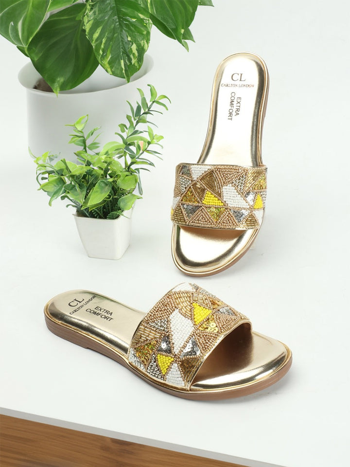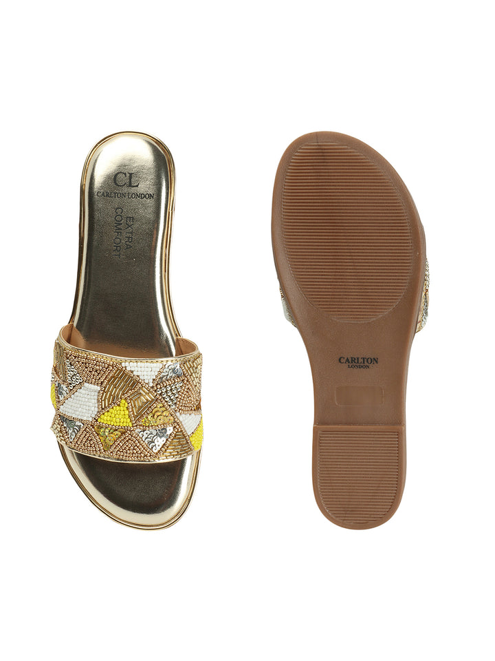 Carlton London Women's Geometric Eye-Catching Beaded Flat Sandals