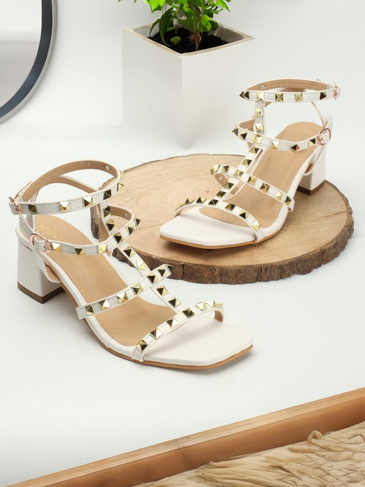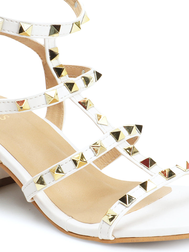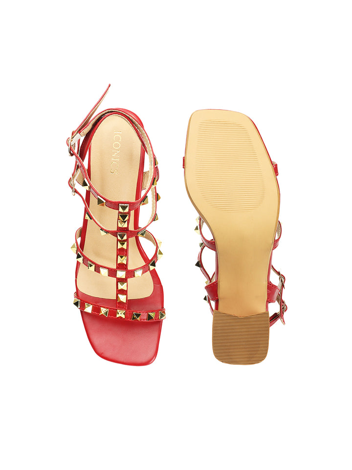 ICONICS Women's Gladiator-Style Studded Ankle Strap Block Heel Sandal