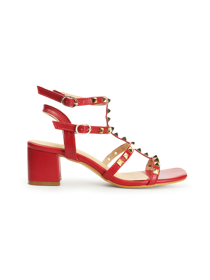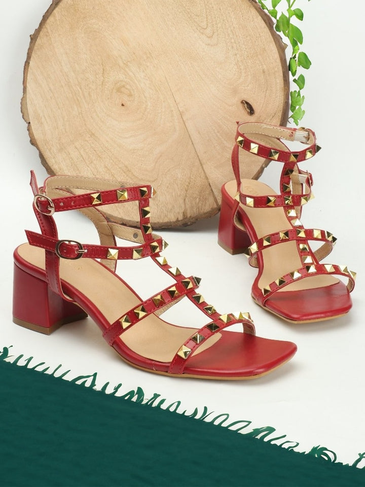 Unleash your edgy side with these bold Gladiator-Style Block Heel Sandals. This design merges classic sophistication with fierce rock-and-roll attitude. The shoe features multiple slender straps across the foot, all meticulously adorned with pyramid-shaped metallic stud embellishments. A secure, adjustable ankle strap provides a personalized and locked-in fit. The comfortable mid-height block heel offers stable lift, making them ideal for all-day wear or adding a daring touch to your evening outfit. Complete with a modern square-toe shape, these sandals are perfect for concerts, parties, or elevating a casual denim look.