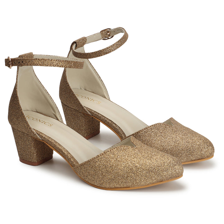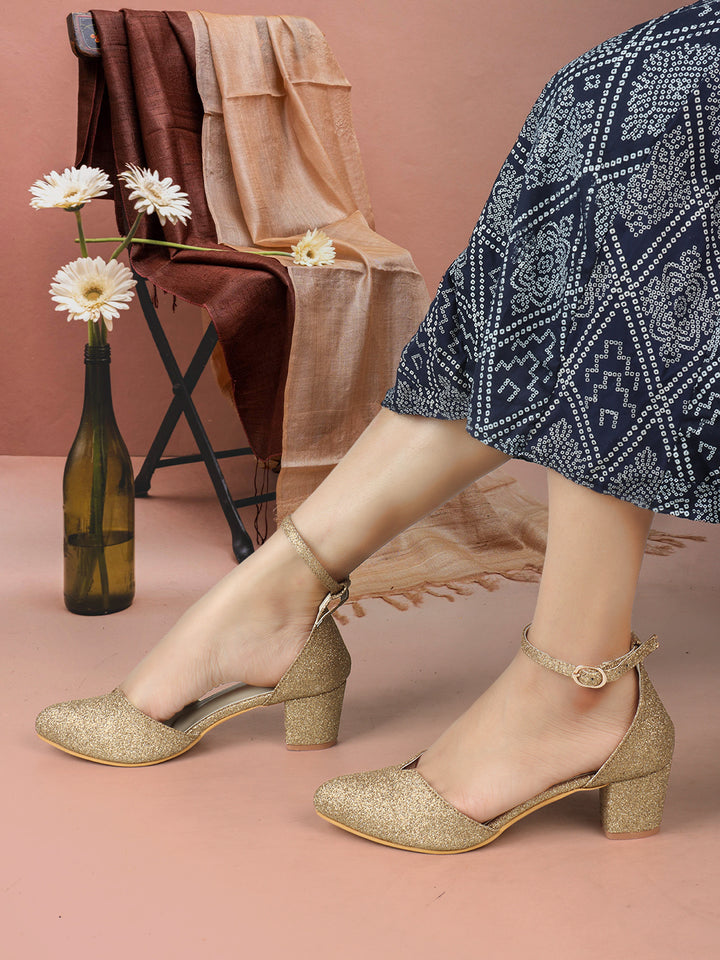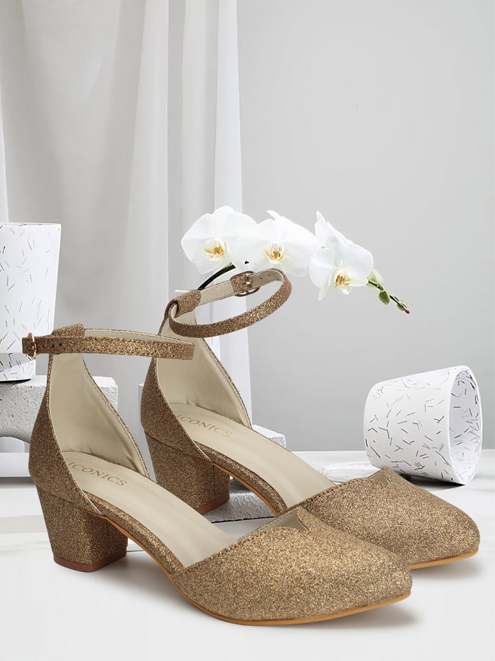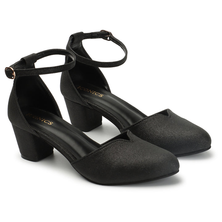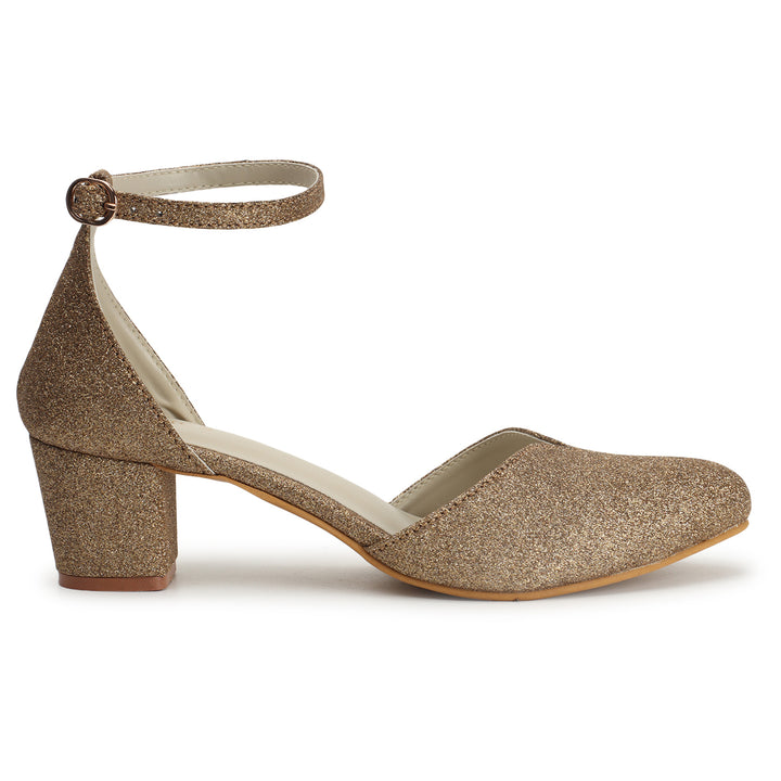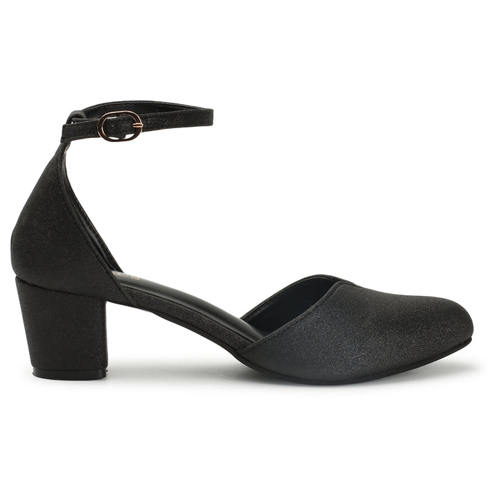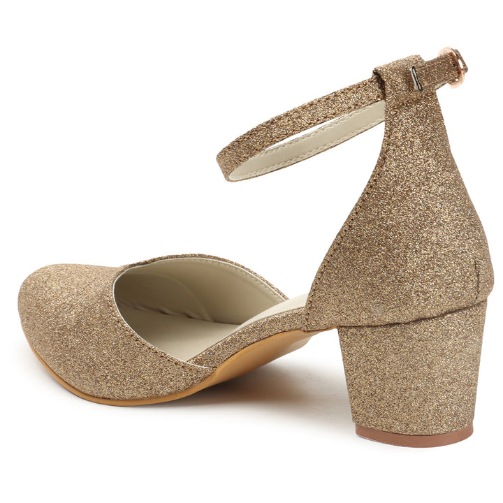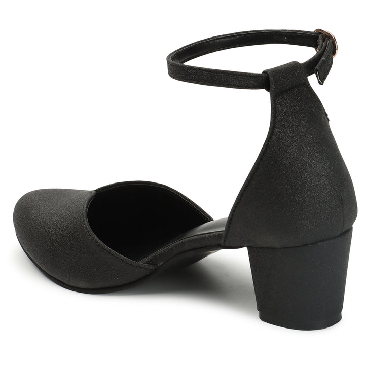 Elevate your evening and semi-formal looks with these dazzling block heel pumps. The classic closed-toe design is enhanced by a chic d'Orsay cut-out along the arch and finished with a subtle glitter or shimmer texture across the entire upper for a touch of party-ready sparkle. A comfortable, stable low block heel provides reliable elevation, while the adjustable slim ankle strap ensures a secure and customized fit for confident movement. These shoes perfectly blend timeless style with modern glamour, making them an essential choice for special events, date nights, or a fashionable day at the office.