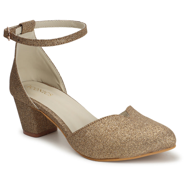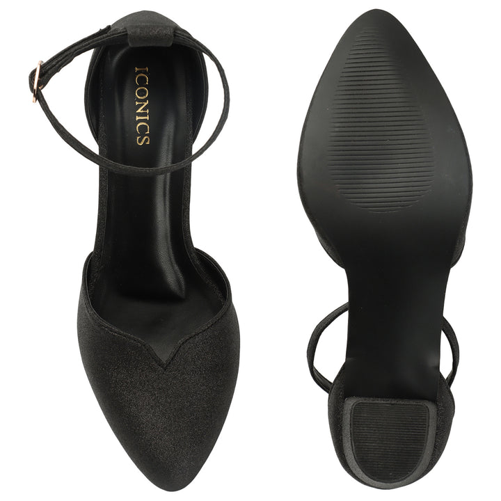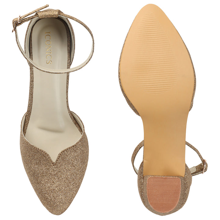 ICONICS Women's Glitter Finish Pointed Toe Sandals with Ankle Strap