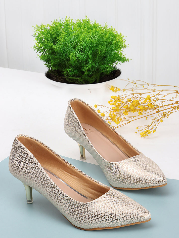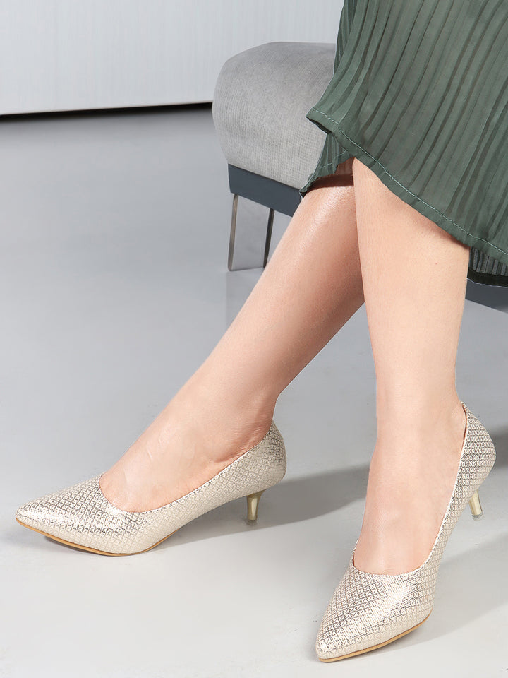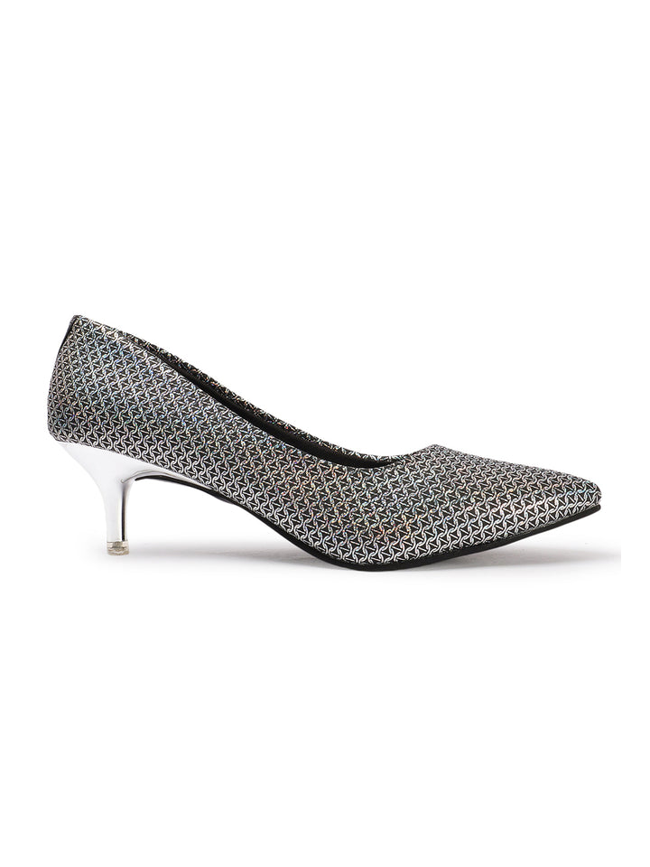 Women's Glitter Pointed Toe Kitten Heel Pumps