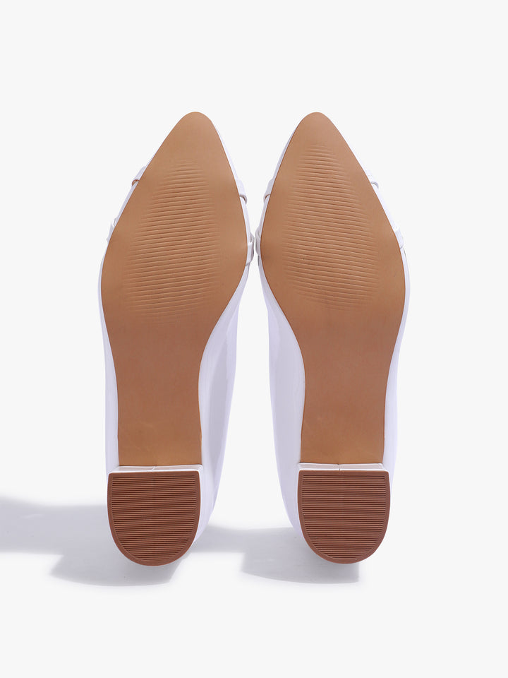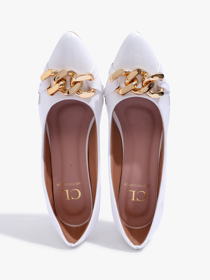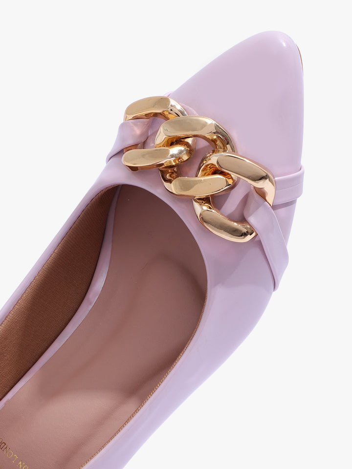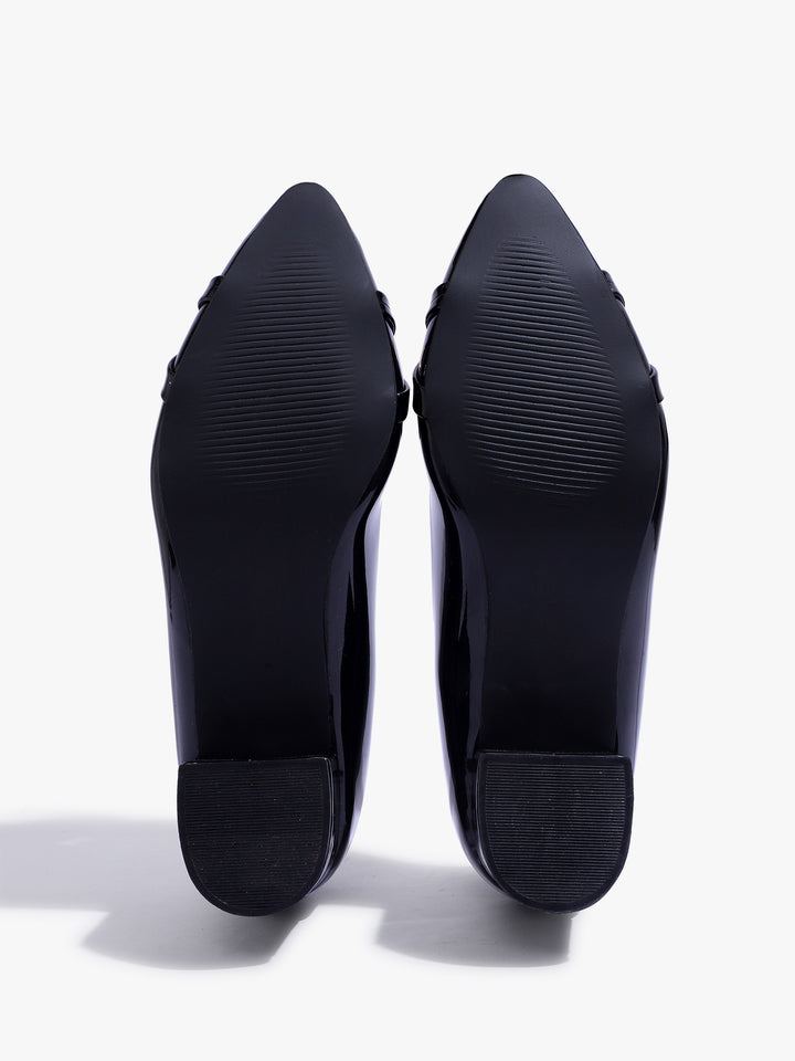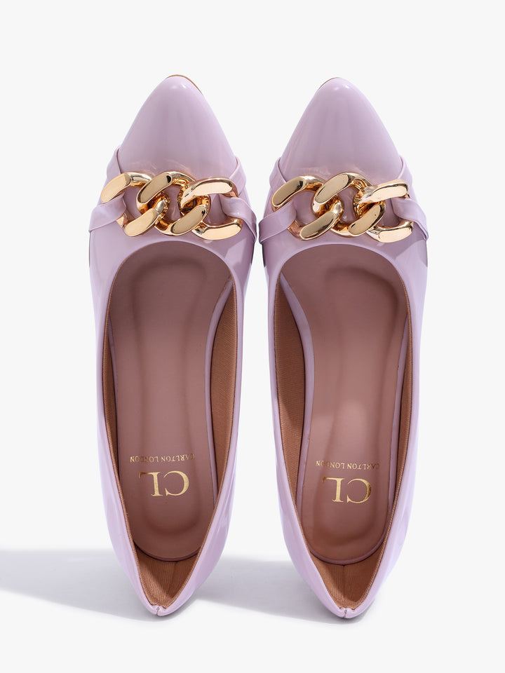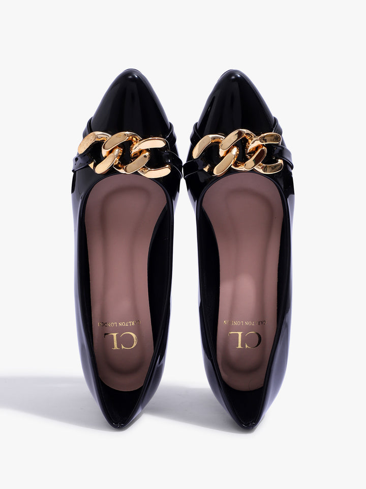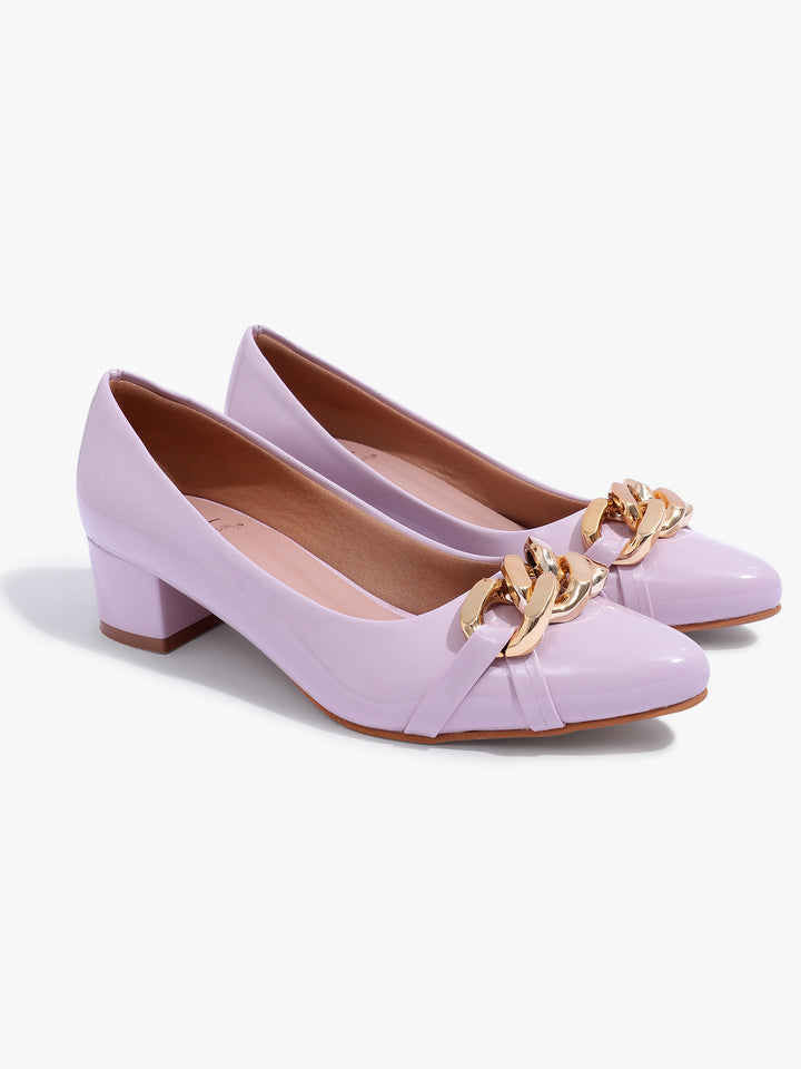 Carlton London Women's Glossy Block Heel Pumps with Chain Detail