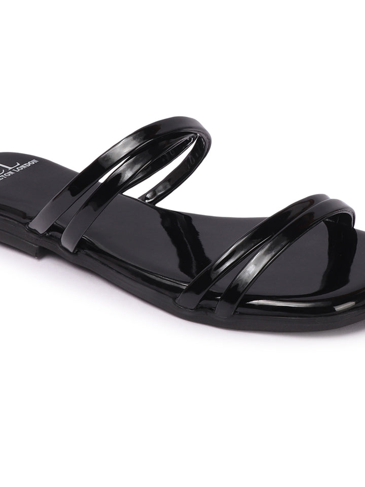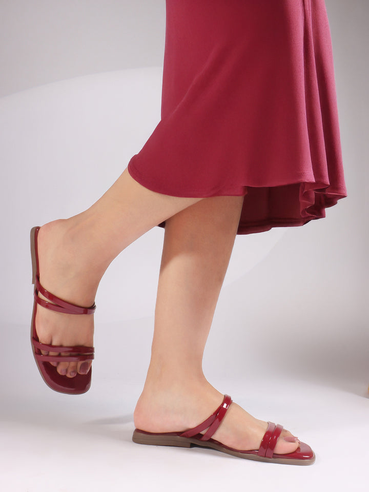 Step into sparkling style and comfort with these Women's Glossy Double Strap Flat Slides Women's Designed for a fashionable yet relaxed look, these footwear The comfortable Perfect for warm weather, these versatile are ideal for casual outings, special events, or simply adding a touch to your everyday look.
