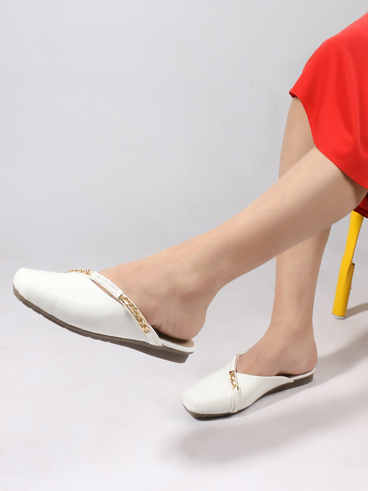 Step into sparkling style and comfort with these Women's Glossy Mules with Chain Detail Strap Women's Designed for a fashionable yet relaxed look, these footwear The comfortable Perfect for warm weather, these versatile are ideal for casual outings, special events, or simply adding a touch to your everyday look.
