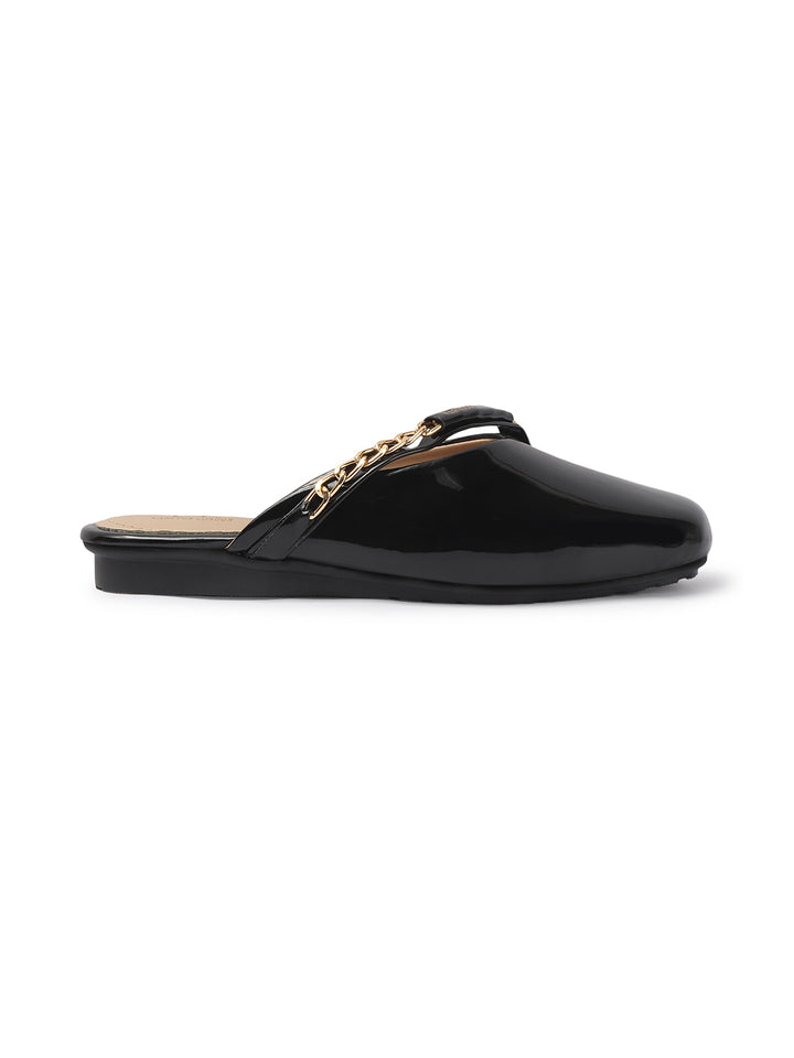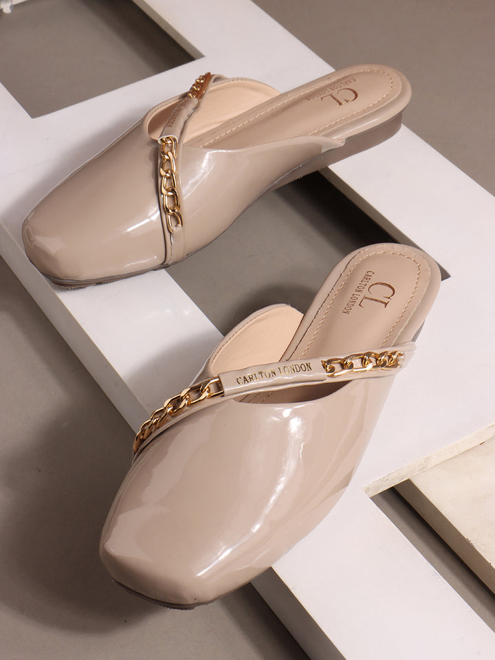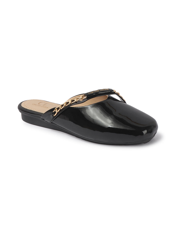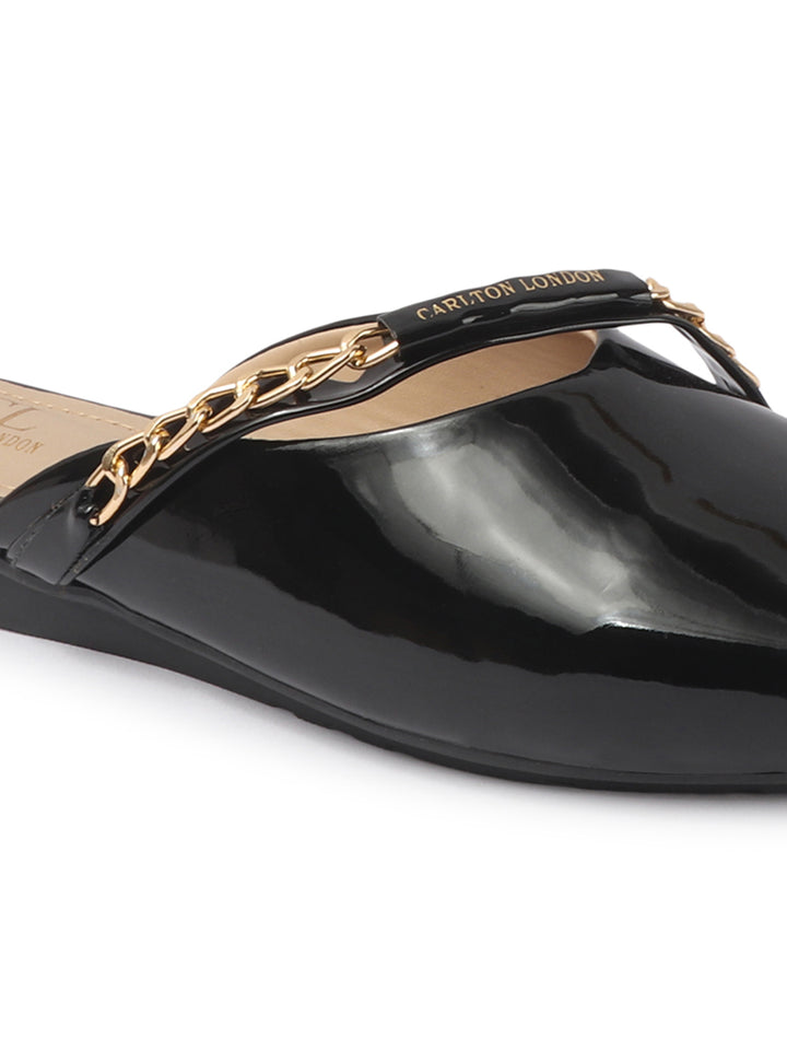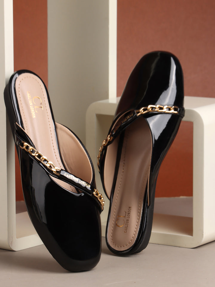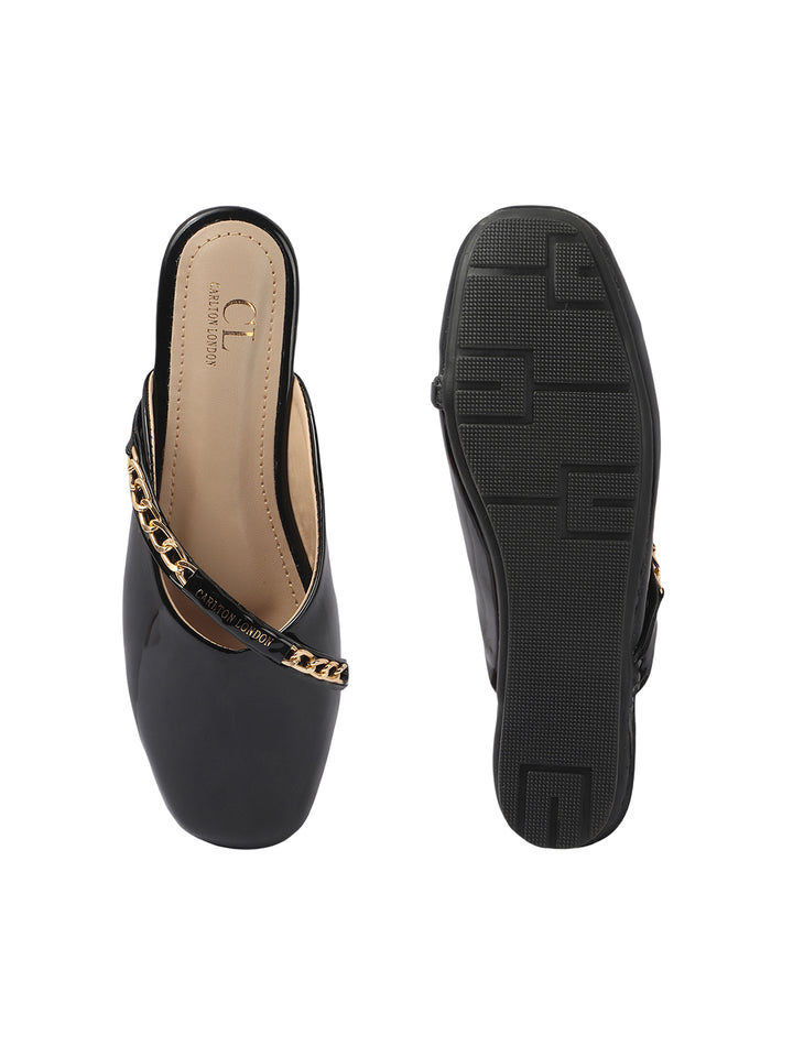 Carlton London Women's Glossy Mules with Chain Detail Strap