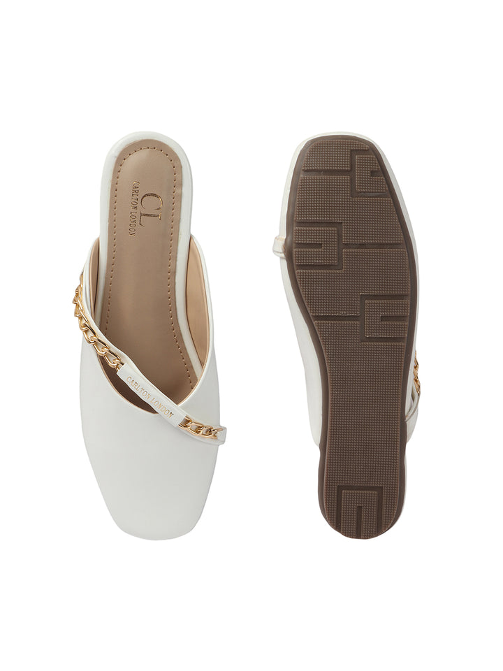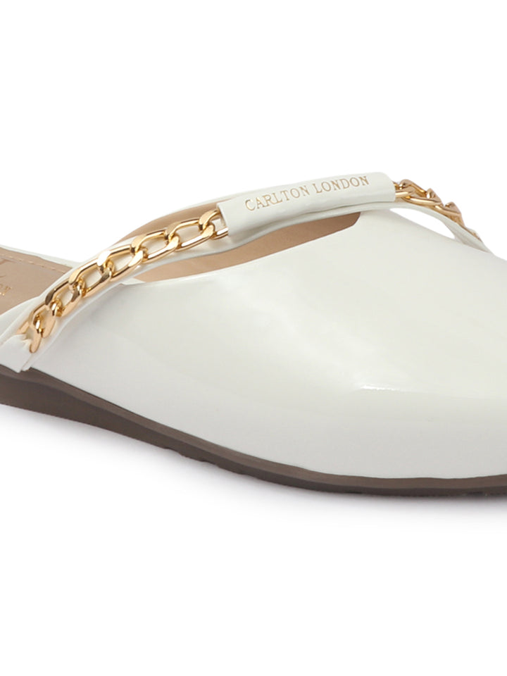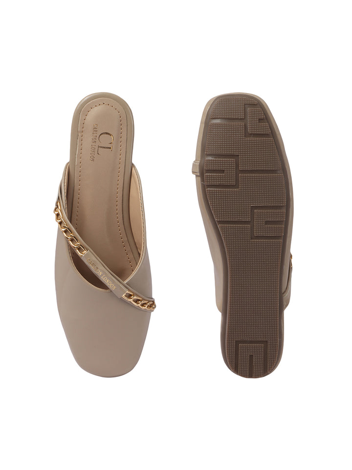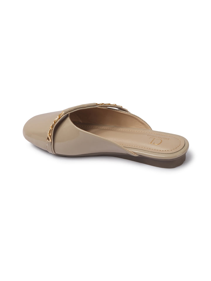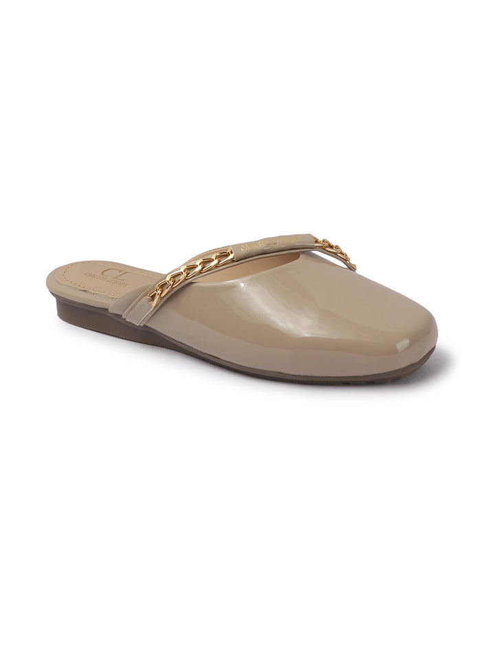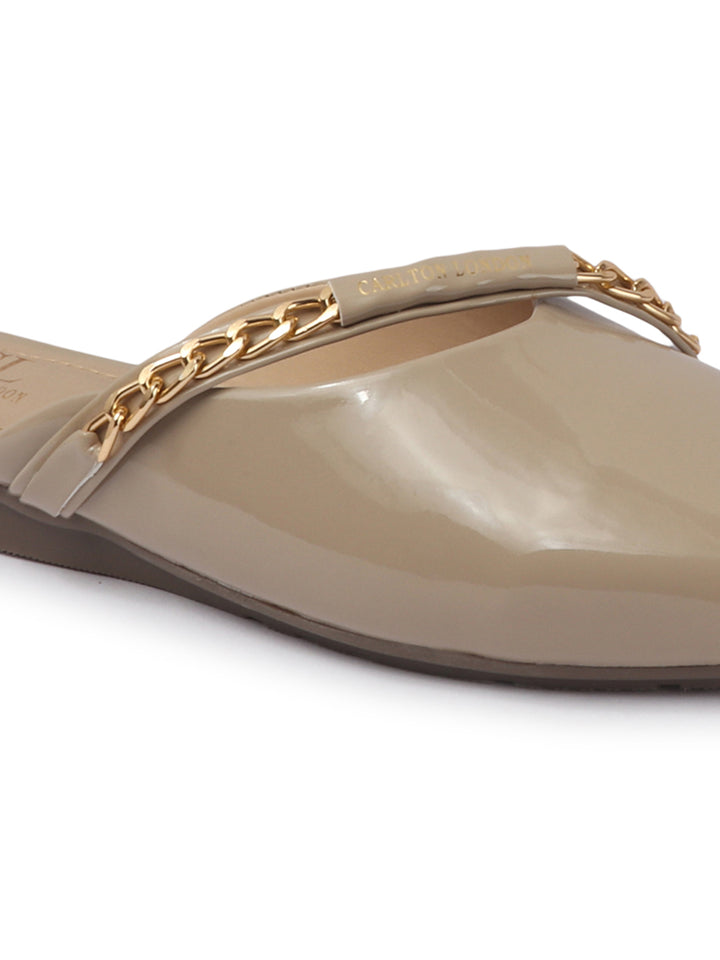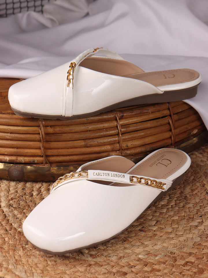 Carlton London Women's Glossy Mules with Chain Detail Strap