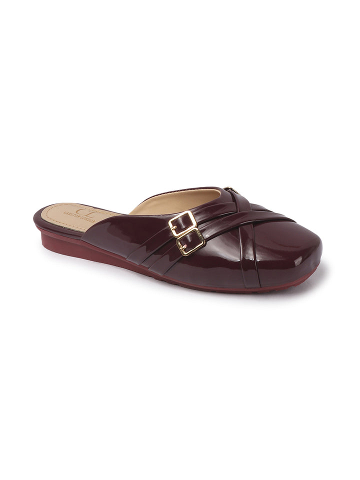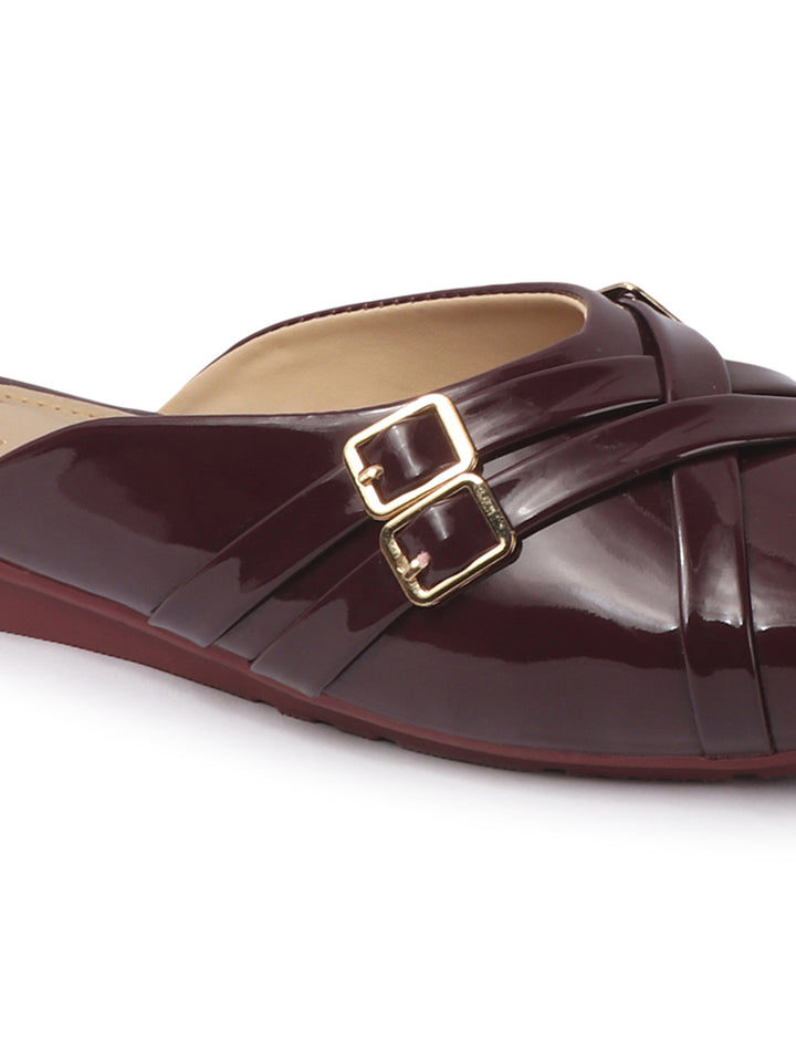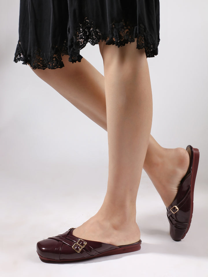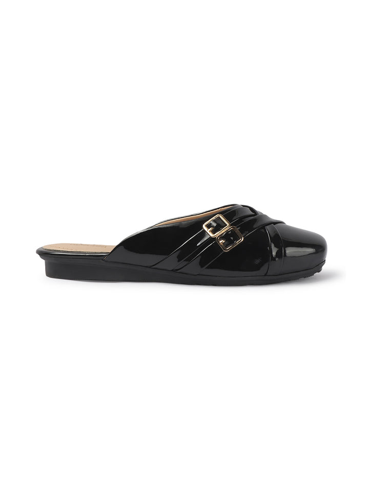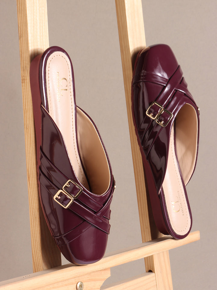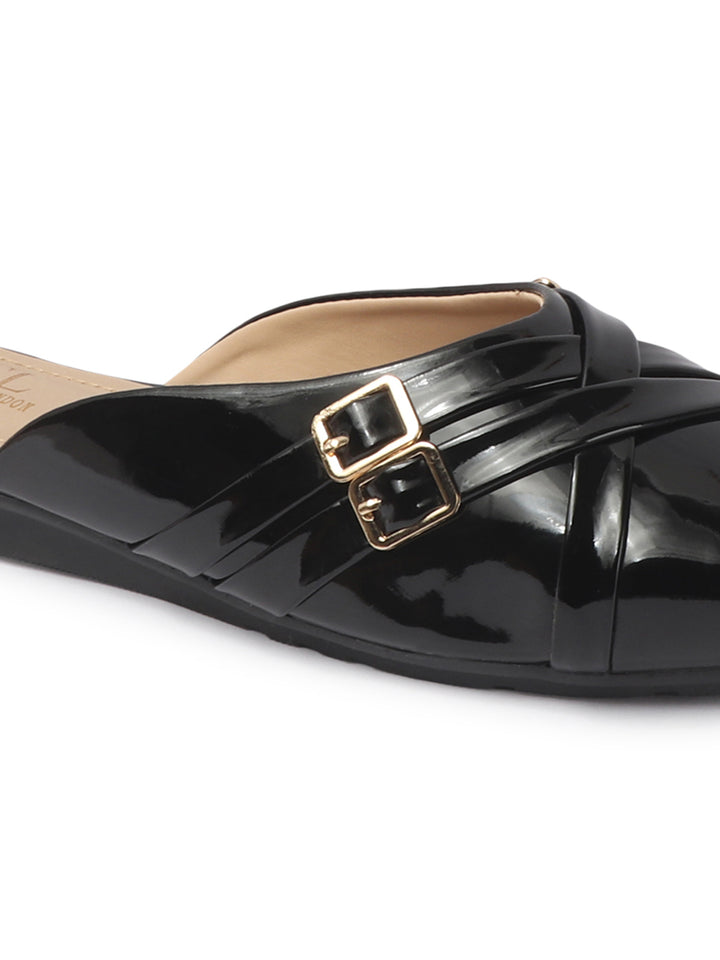 Women's Glossy Mules with Criss-Cross Buckle Straps