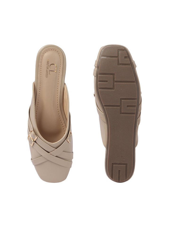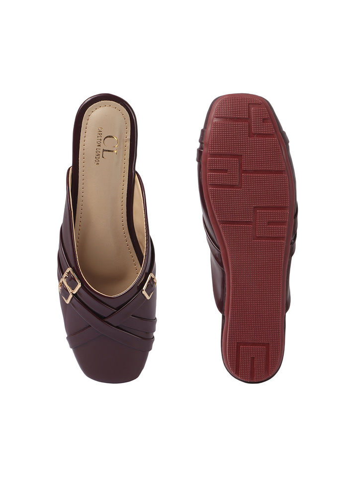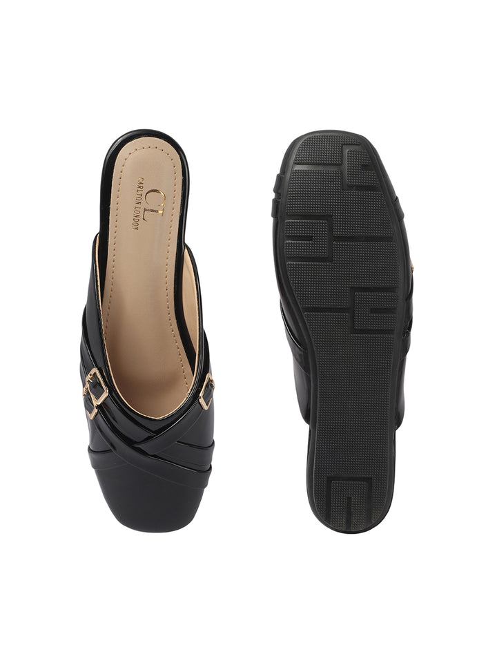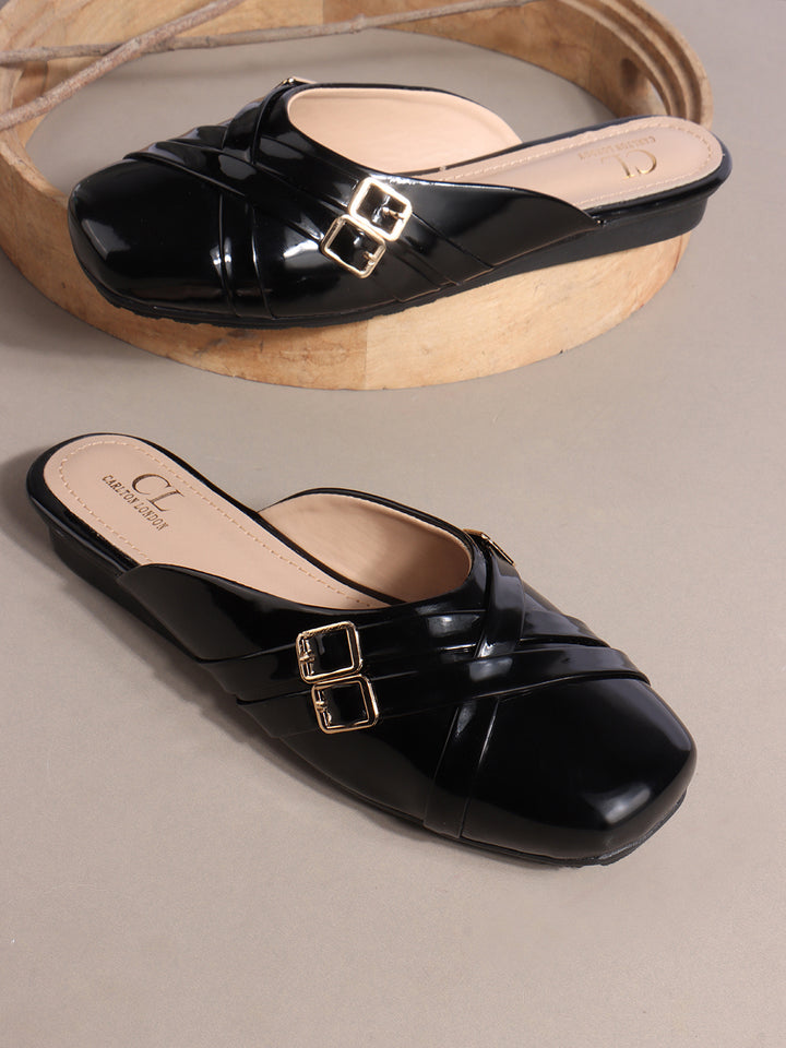 Carlton London Women's Glossy Mules with Criss-Cross Buckle Straps