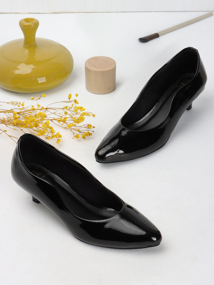 Women's Glossy Pointed Toe Kitten Heel Pumps