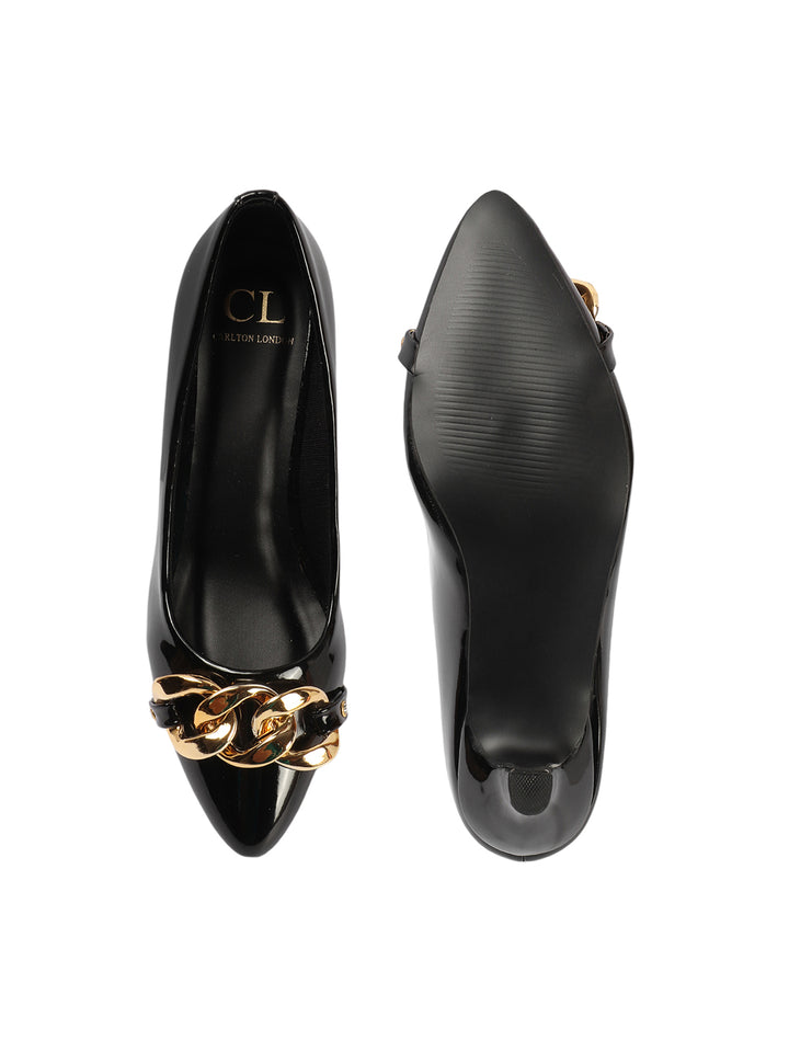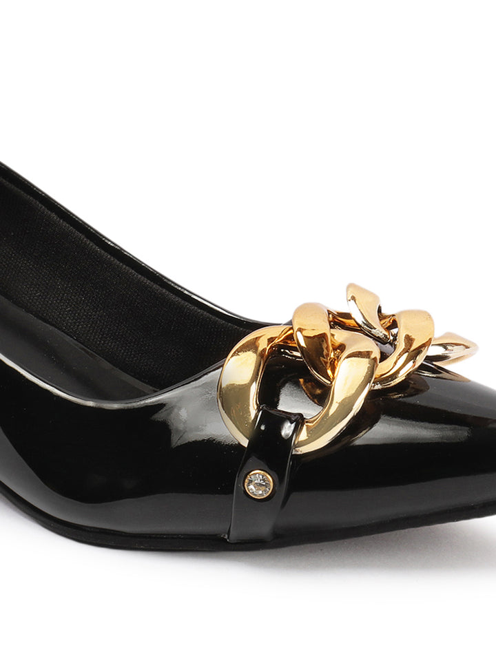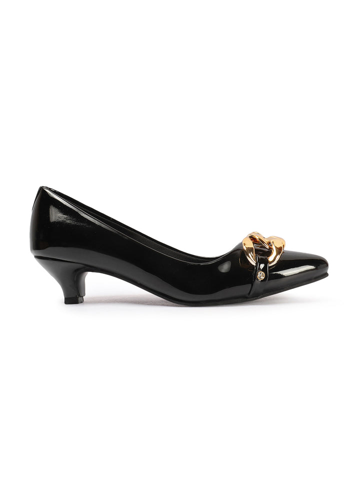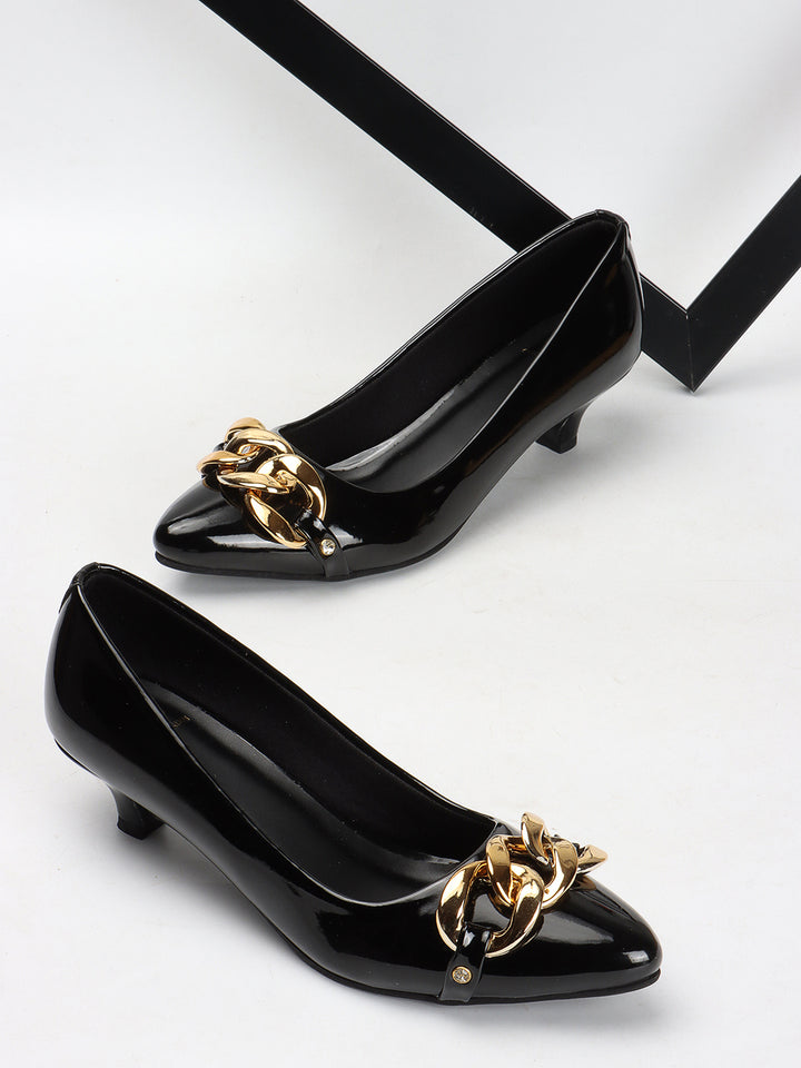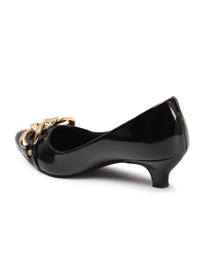 Carlton London Women's Glossy Pointed Toe Kitten Heel Pumps with Chain