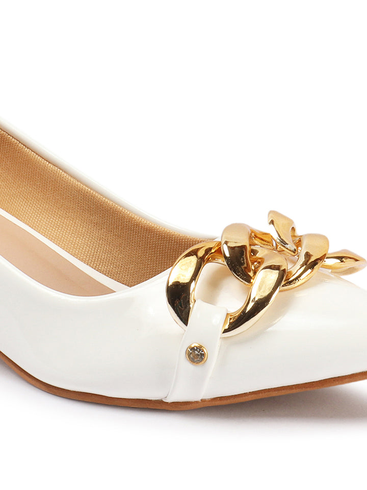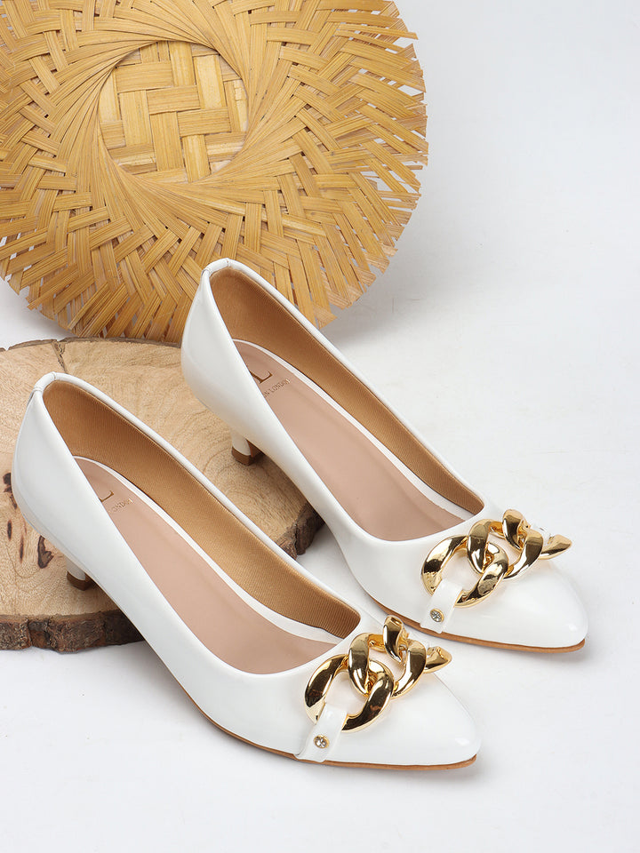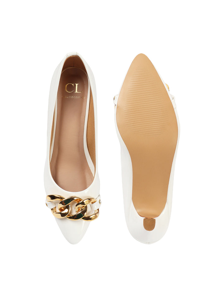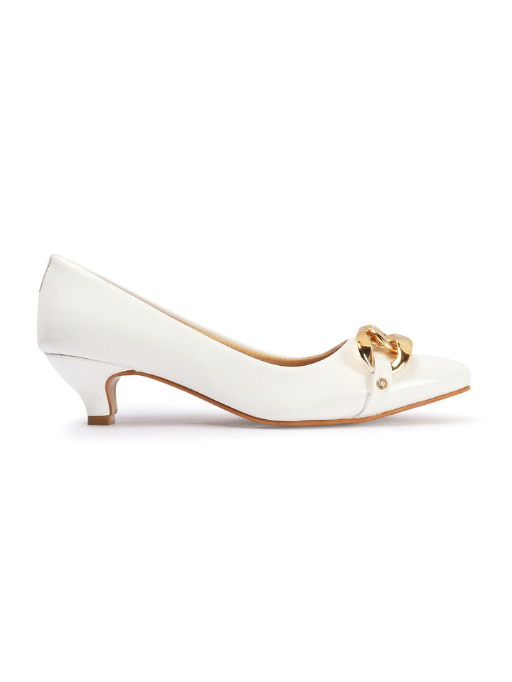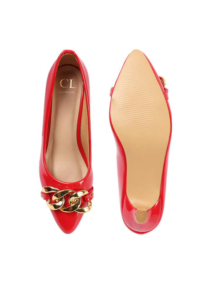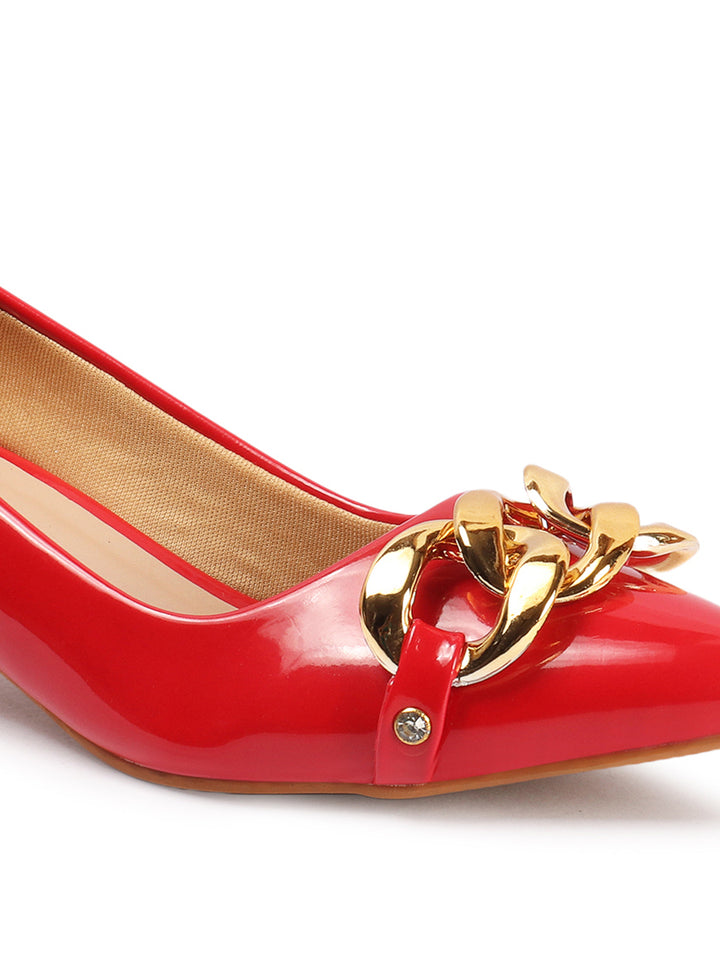 Carlton London Women's Glossy Pointed Toe Kitten Heel Pumps with Chain