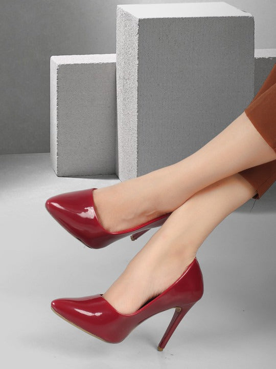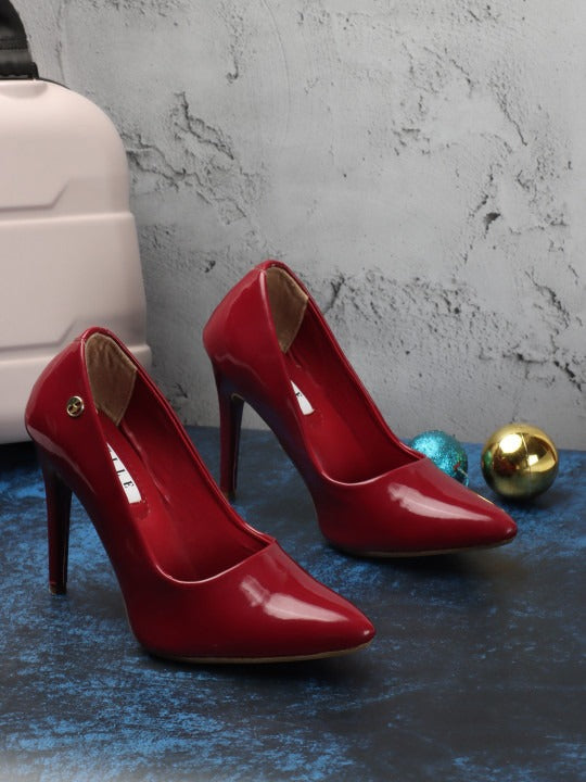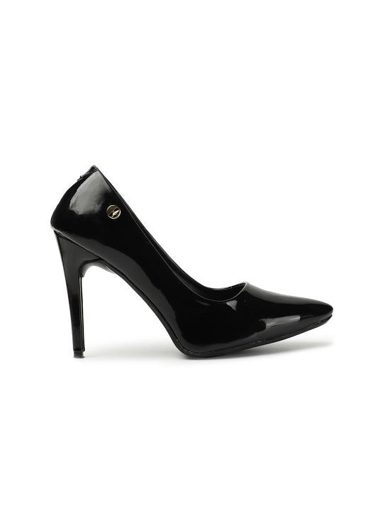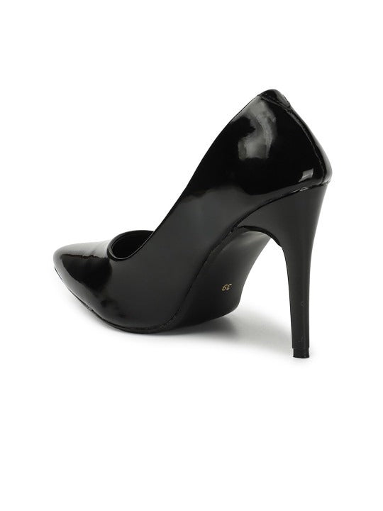 Exude confidence and sophistication with these timeless glossy stiletto pumps. The design features a classic pointed-toe silhouette and a high, sleek stiletto heel, creating a powerful and elegant profile. The polished, patent-finish upper provides a luxurious shine that makes these pumps a standout piece for any occasion. A subtle metallic emblem on the side adds a touch of refined detail. Perfect for professional wear, evening events, or any time you want to make a glamorous statement, these pumps are a versatile and essential addition to your shoe collection.