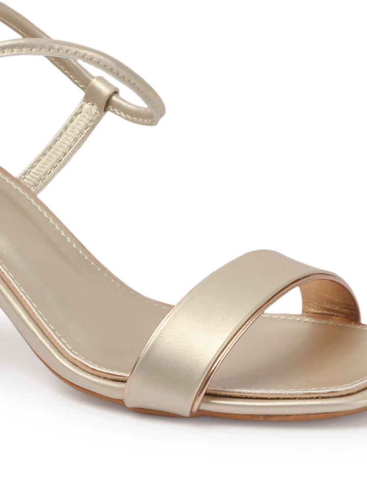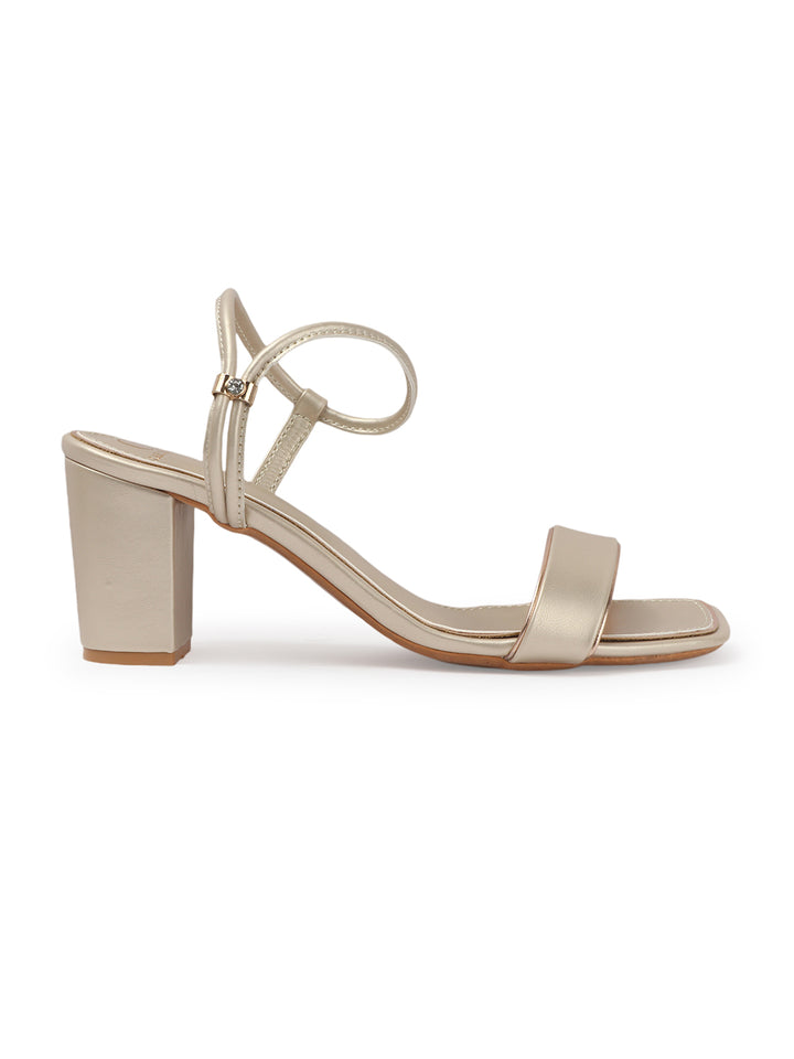 Carlton London Women's Gold Block Heel Ankle Strap Sandals