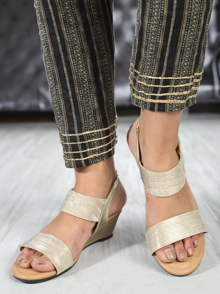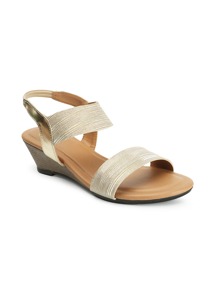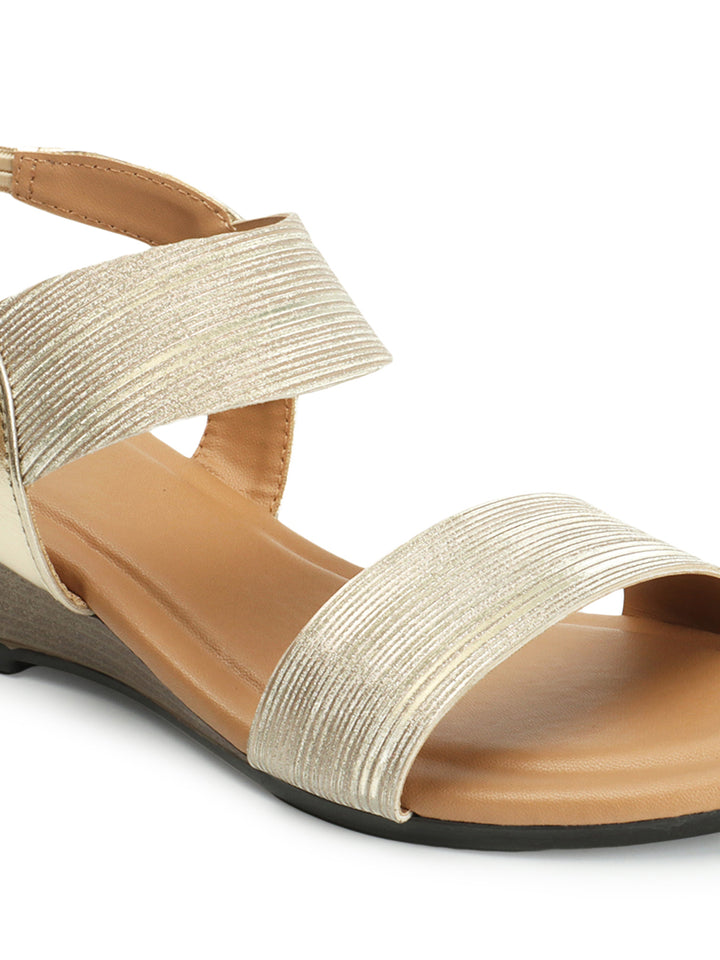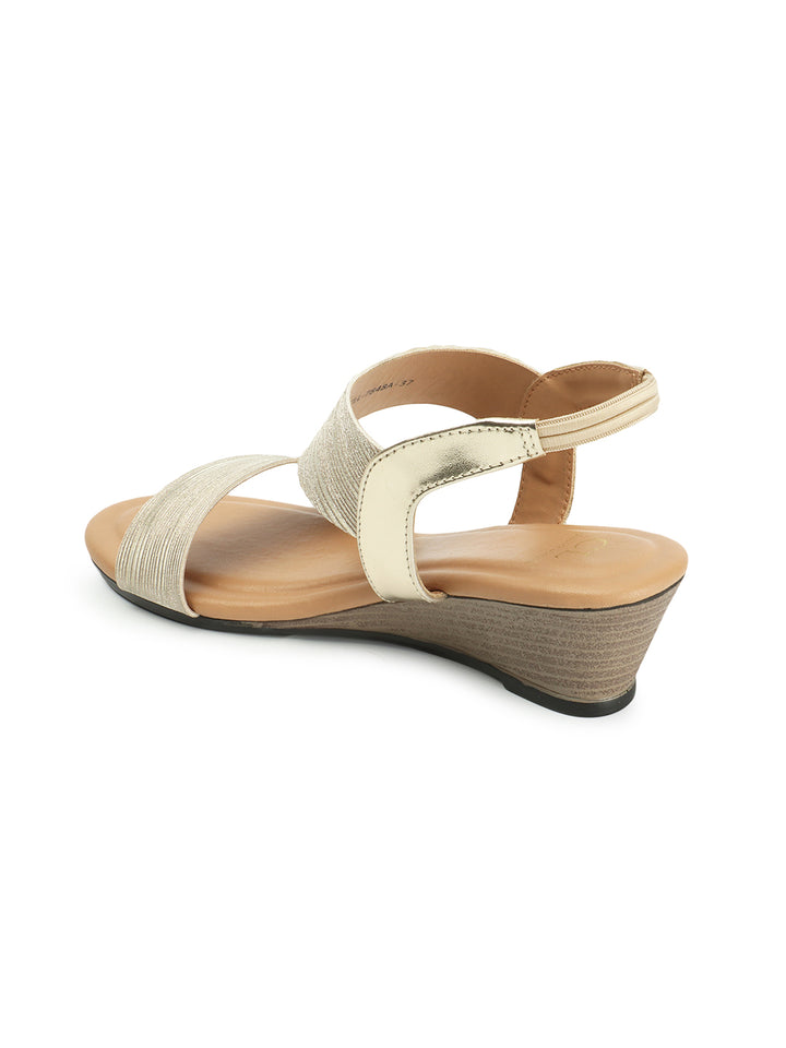 Women's Gold Elasticated Wedge Sandals
