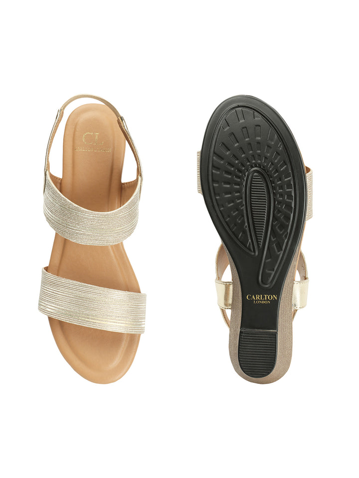 Carlton London Women's Gold Elasticated Wedge Sandals
