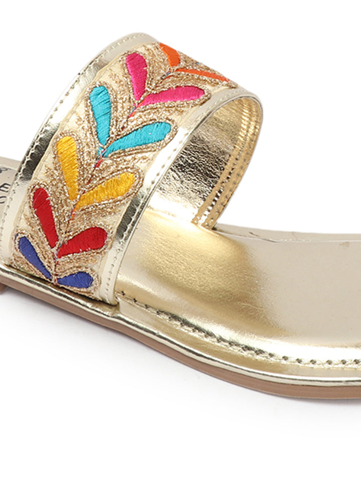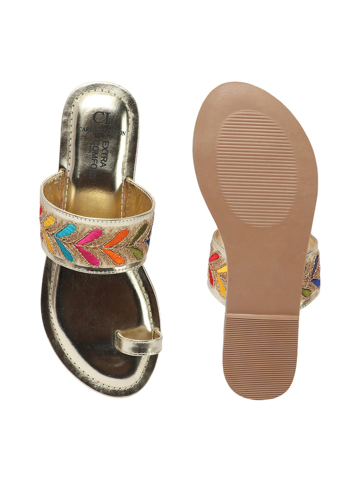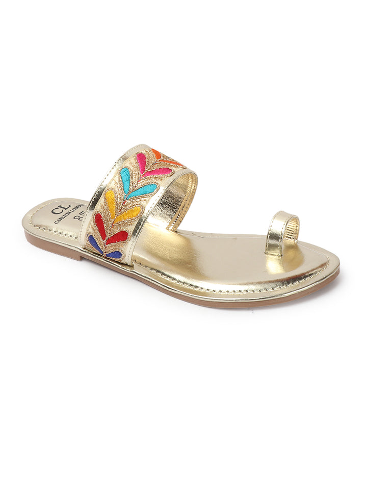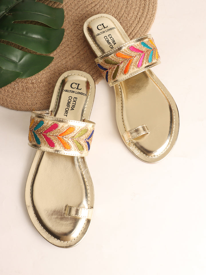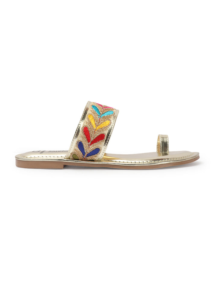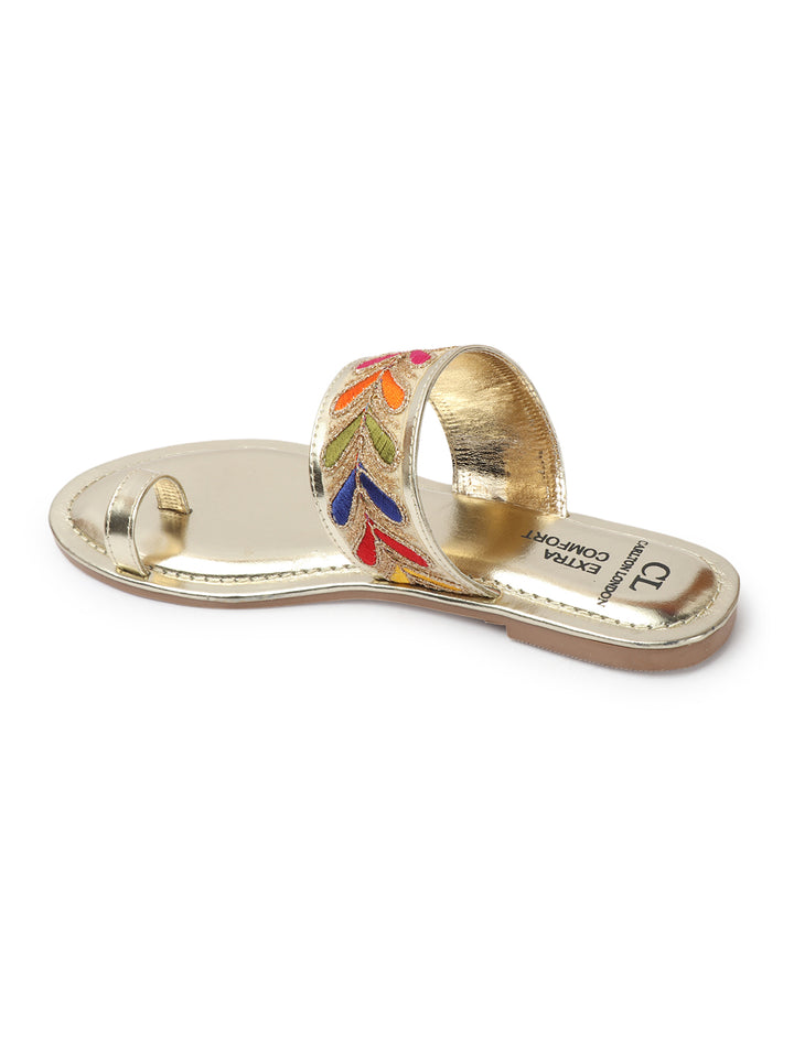 Women's Gold-Tone Embroidered Toe-Ring Flat Sandals