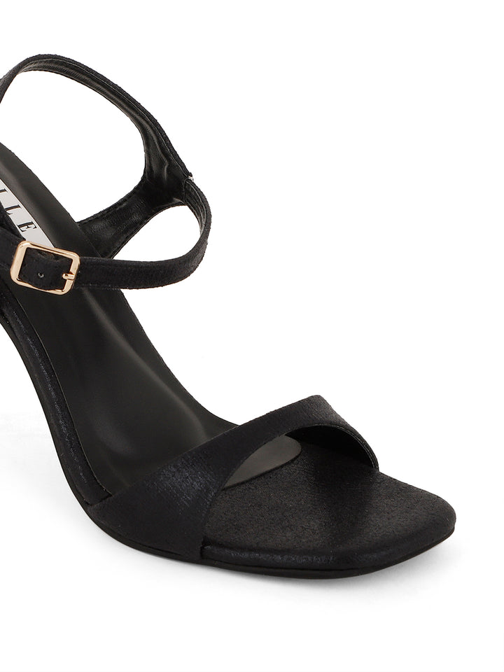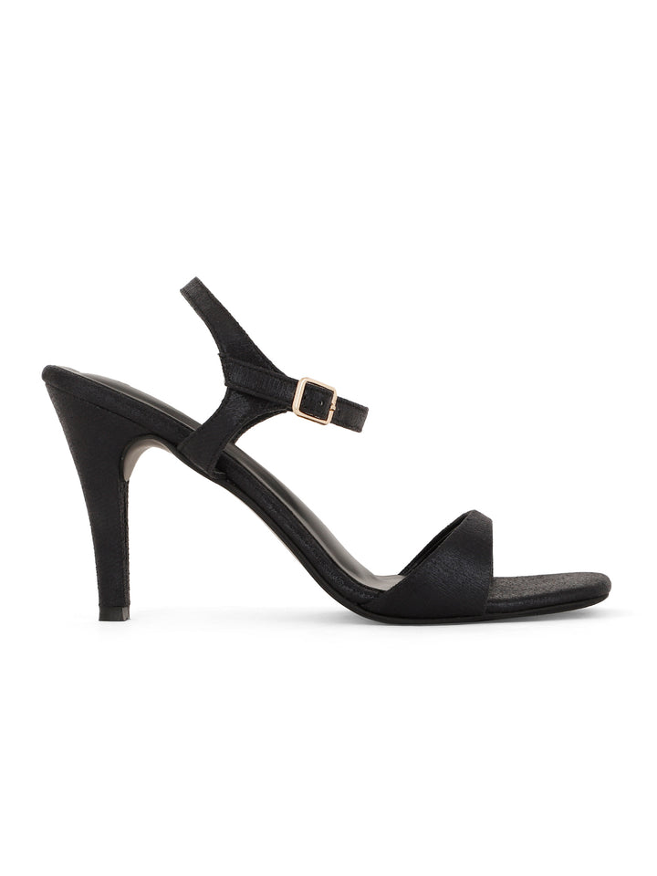 Step out in timeless elegance with these sophisticated high heel sandals. The design features a delicate strap across the toes and an adjustable ankle strap, ensuring a secure and comfortable fit. The textured finish of the straps and the flared high heel add a touch of modern style. With their versatile design and comfortable lift, these sandals are an ideal choice for a variety of occasions, from formal events to a night out on the town.