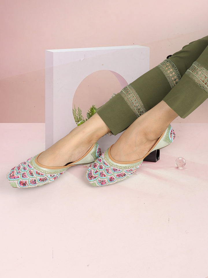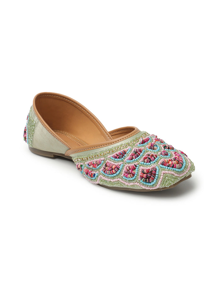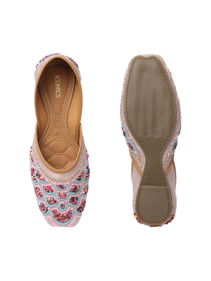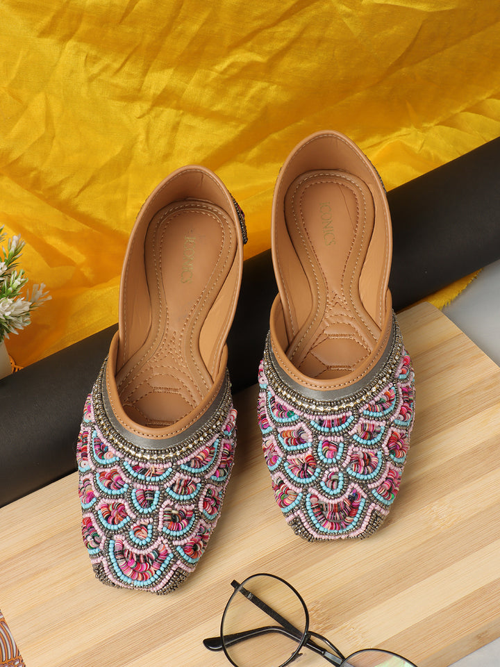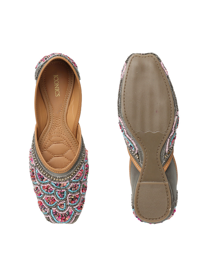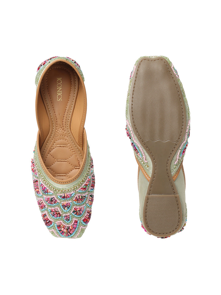 ICONICS Women's Intricately Beaded Ethnic Jutti with Scalloped Embroidery