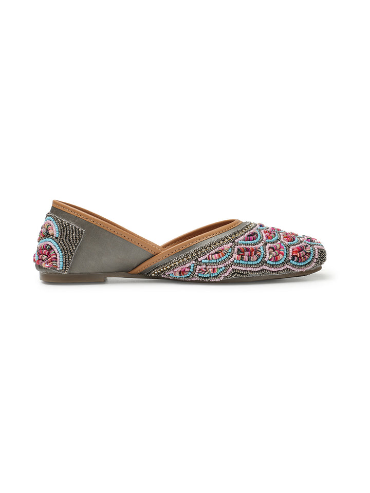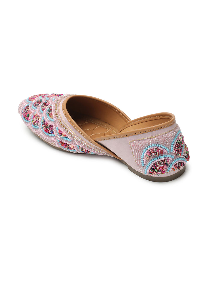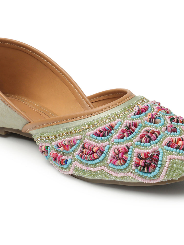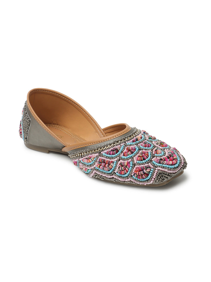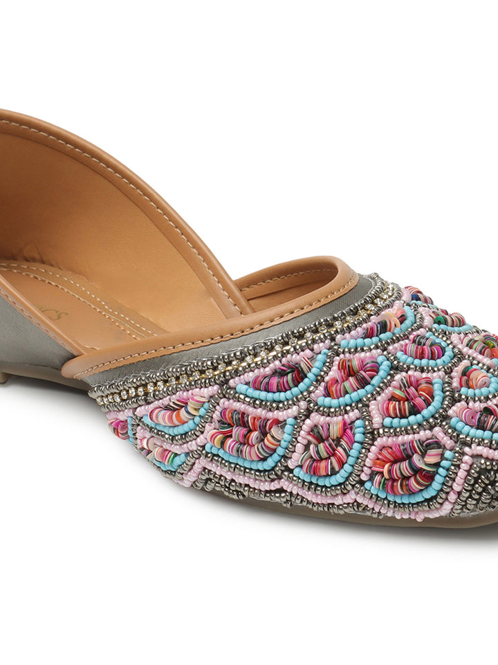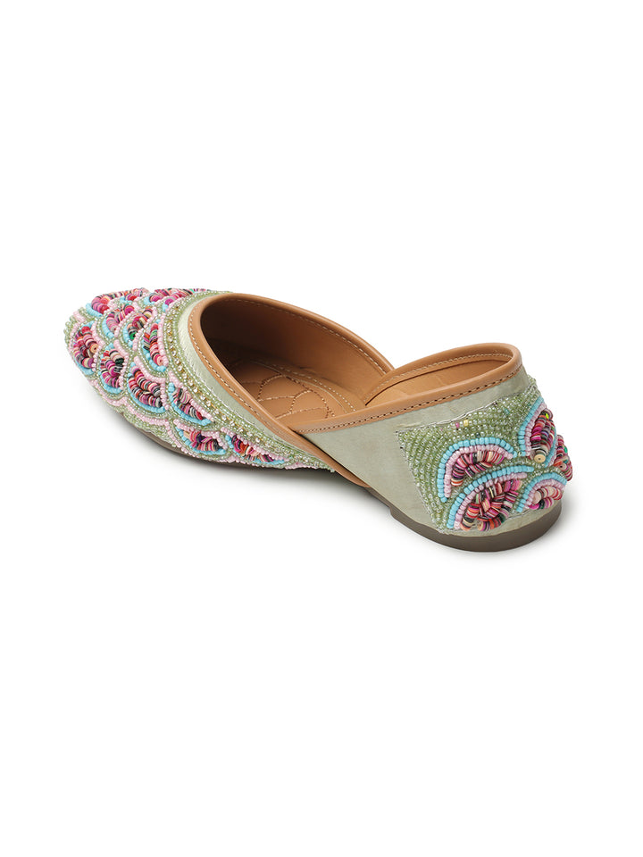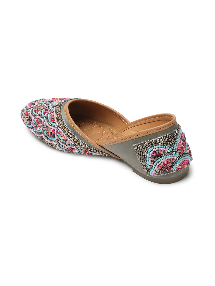 ICONICS Women's Intricately Beaded Ethnic Jutti with Scalloped Embroidery