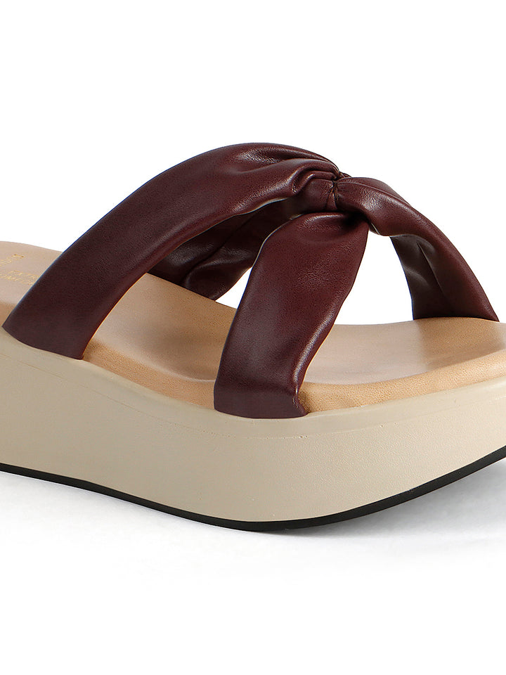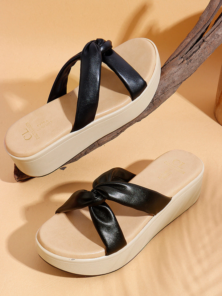 Women's Knot Detail Wedge Slide Sandals