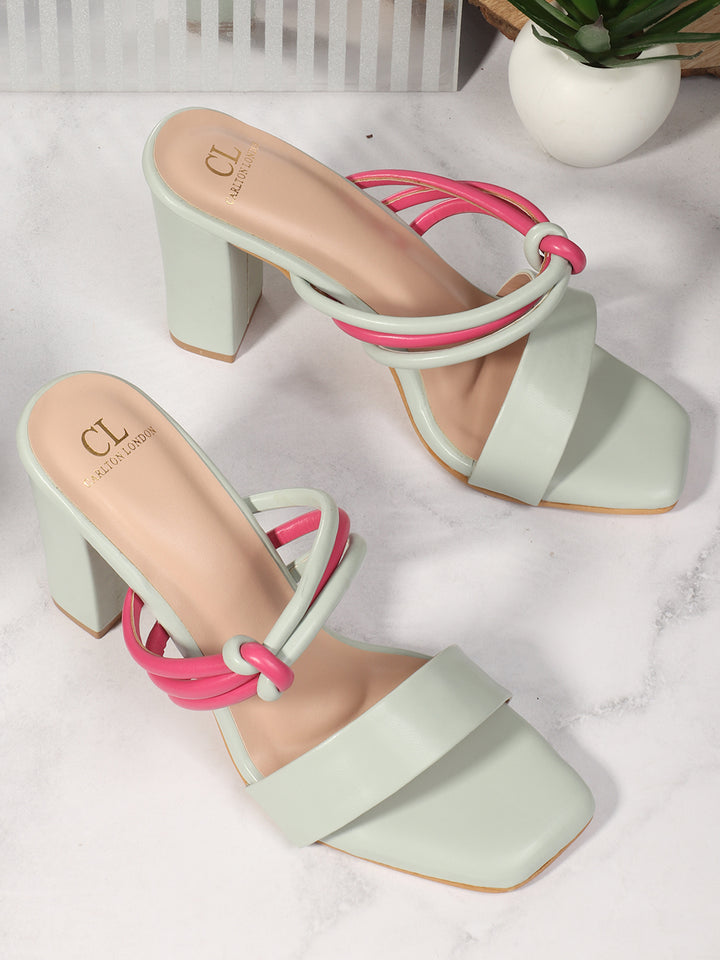 Women's Knotted Strap Square Toe Block Heel Sandal