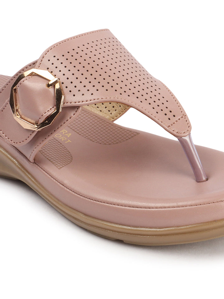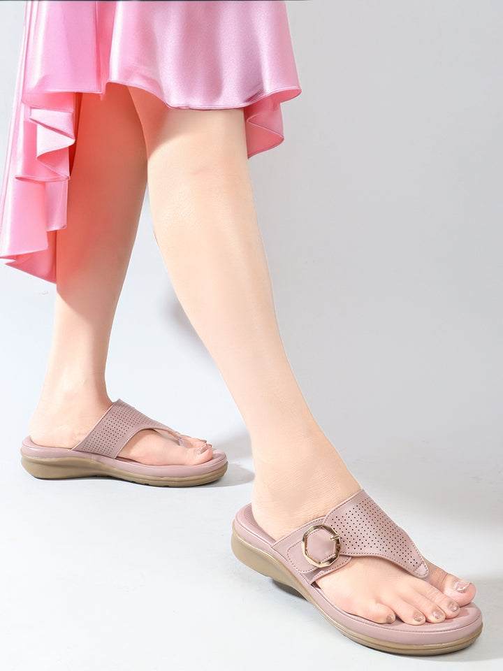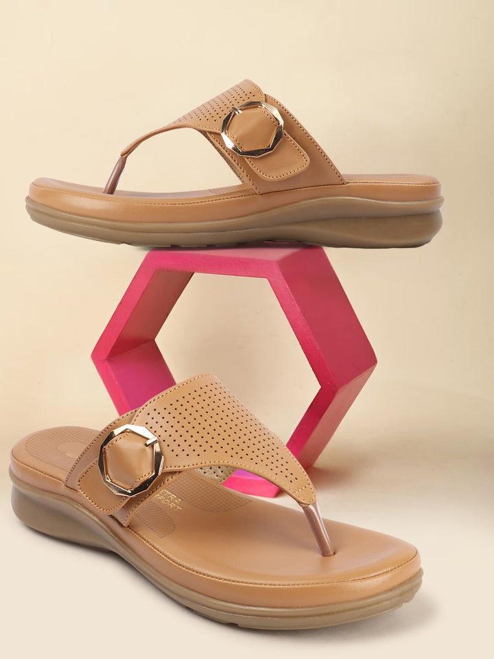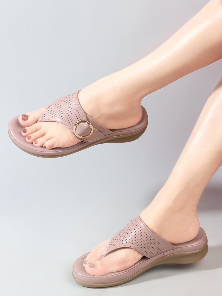 Women's Laser Cut Buckle Accent Comfort Sandal