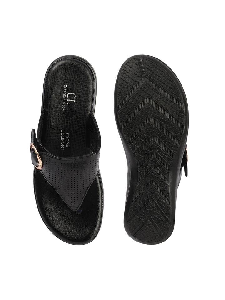 Carlton London Women's Laser Cut Buckle Accent Comfort Sandal