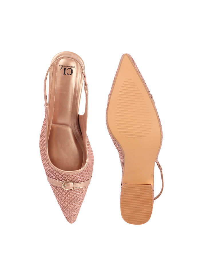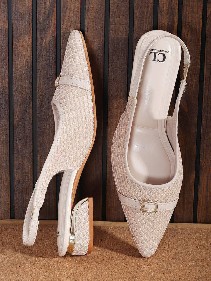 Carlton London Women's Mesh Pointed Toe Slingback Block Heel Sandal
