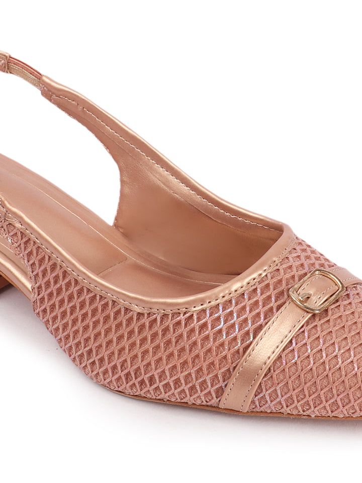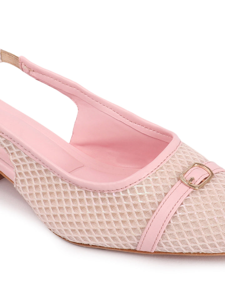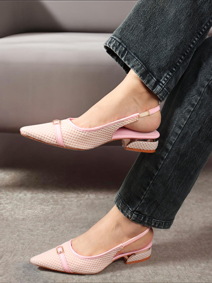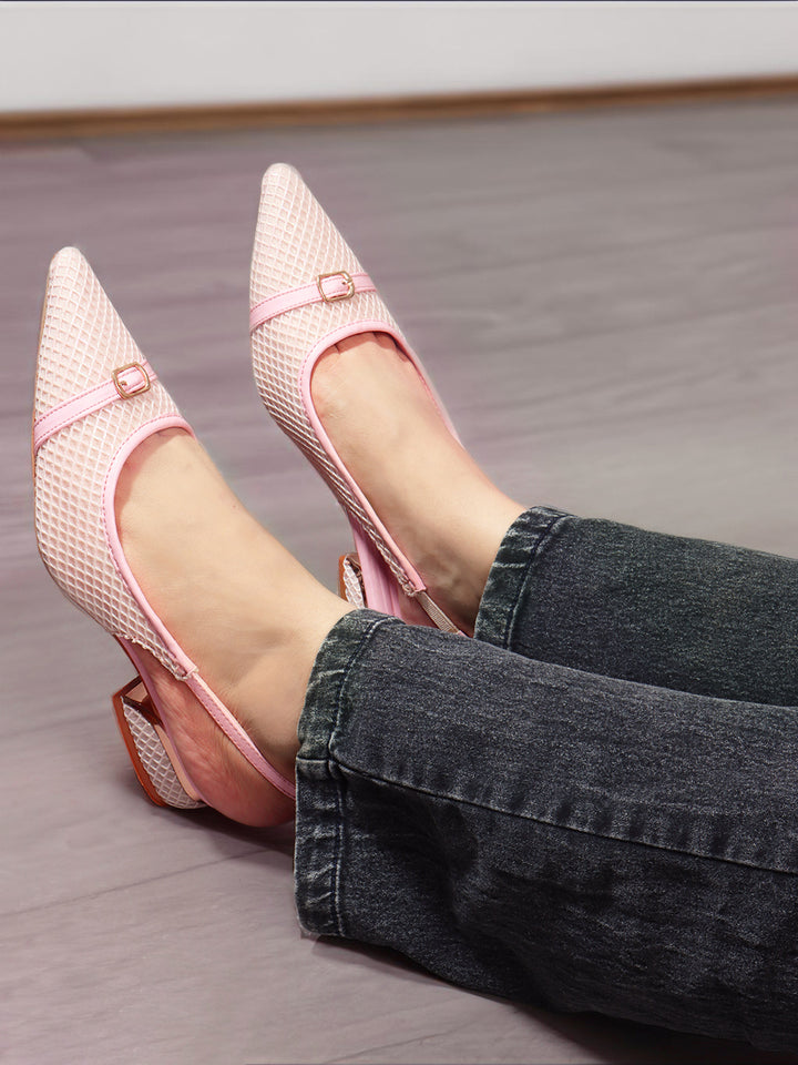 Women's Mesh Pointed Toe Slingback Block Heel Sandal