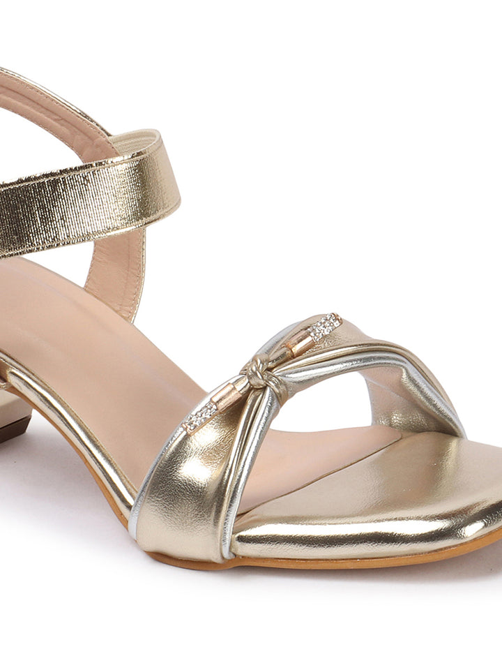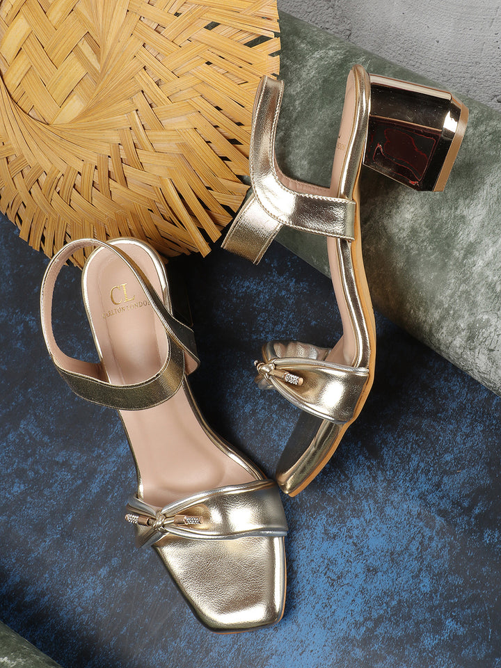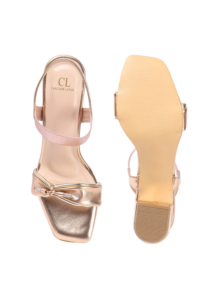 Carlton London Women's Metallic Ankle Strap Block Heel Sandals
