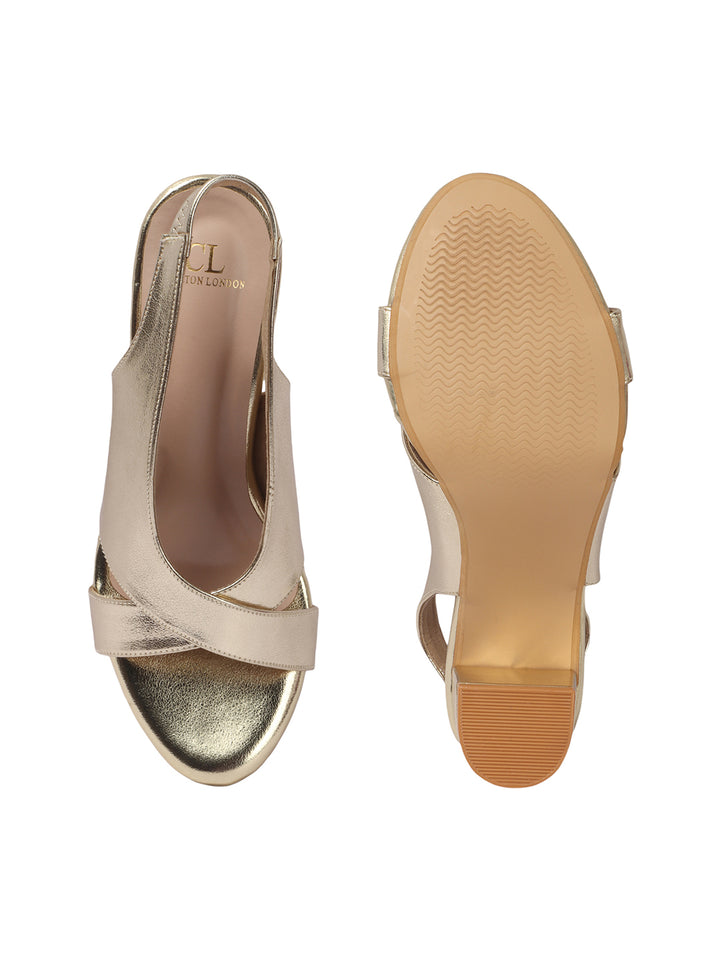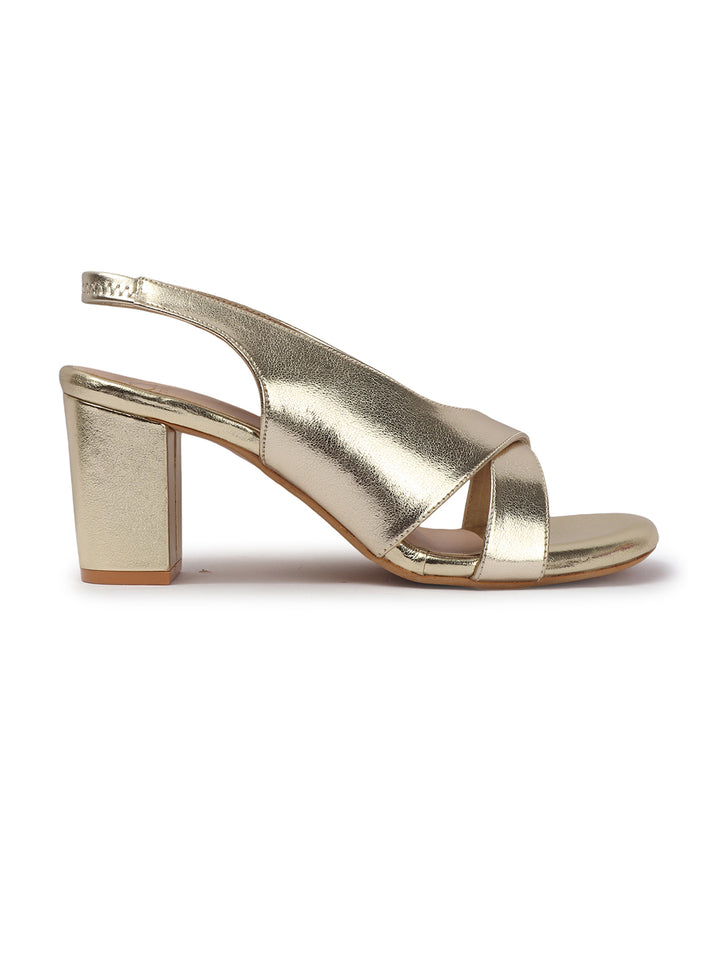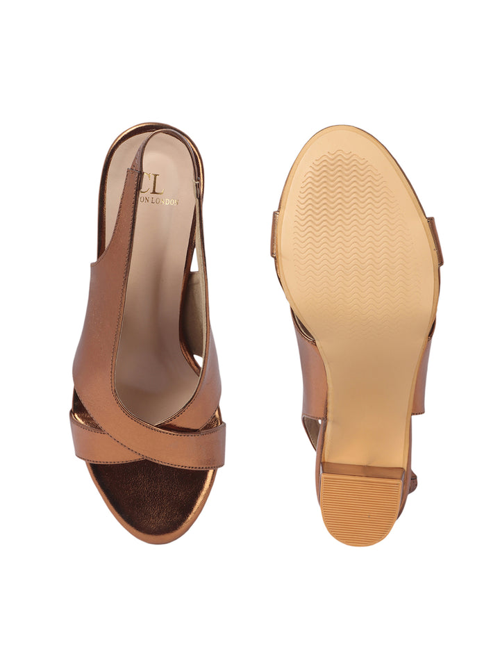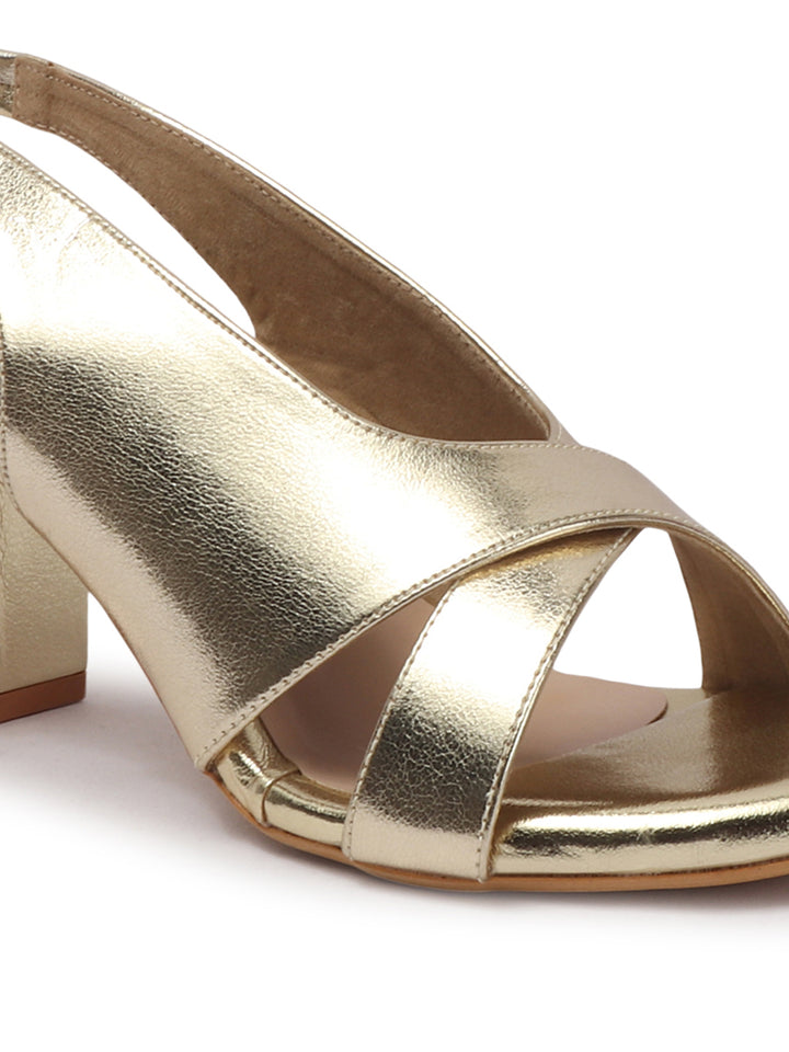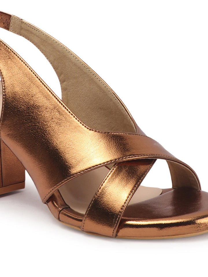 Carlton London Women's Metallic Criss-Cross Slingback Block Heel Sandals