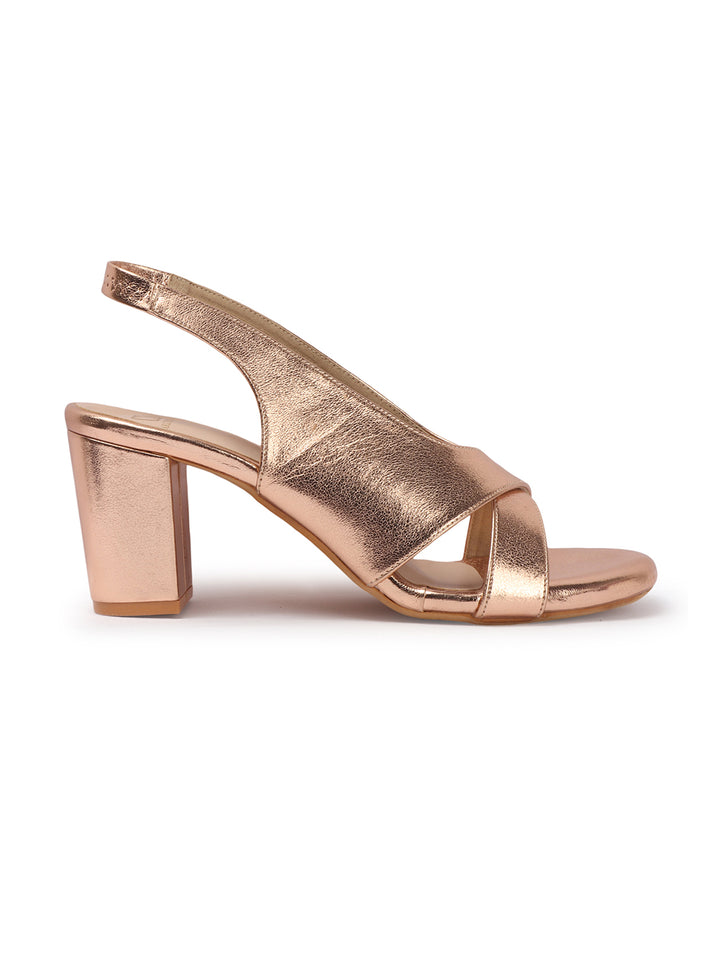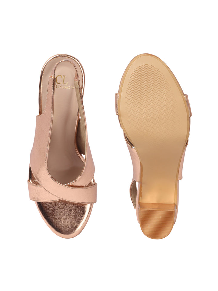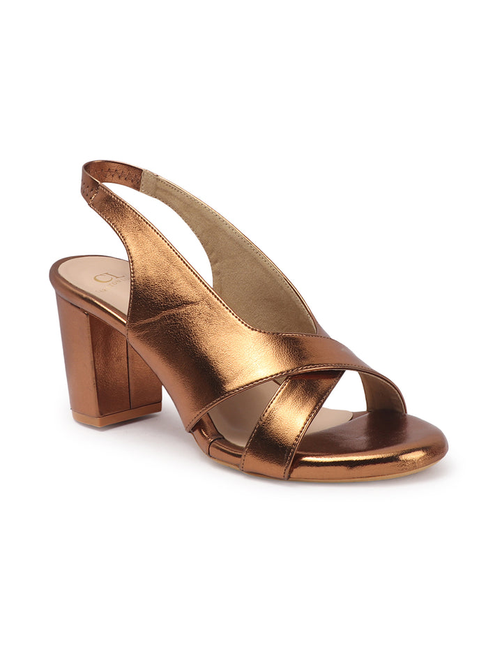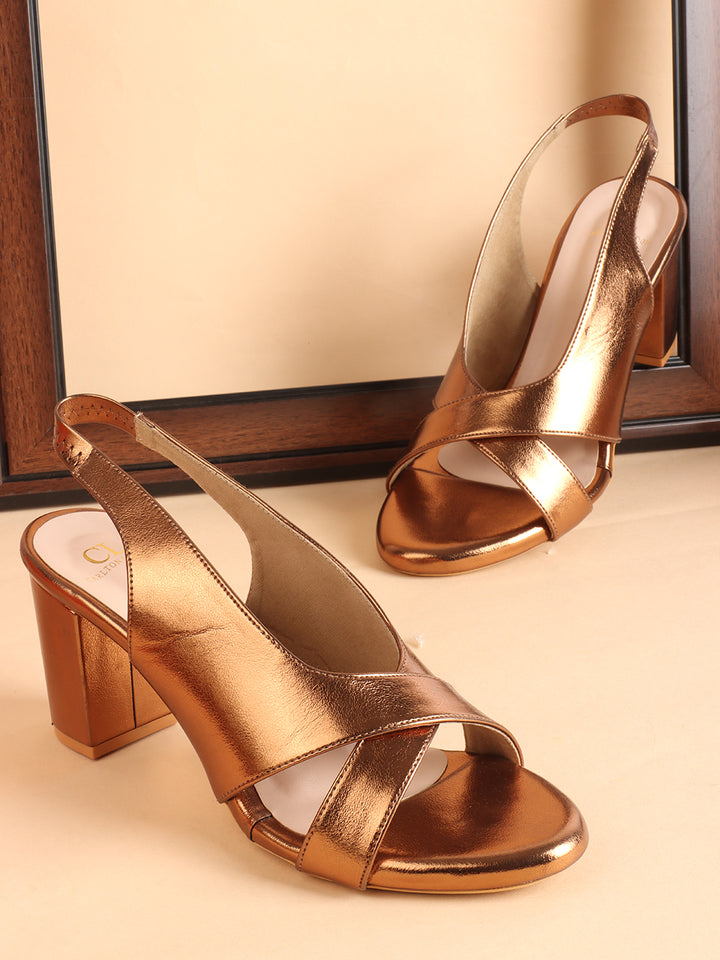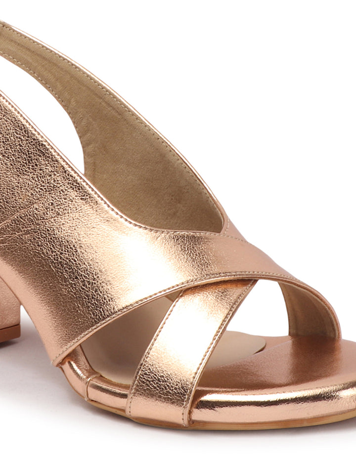 Carlton London Women's Metallic Criss-Cross Slingback Block Heel Sandals