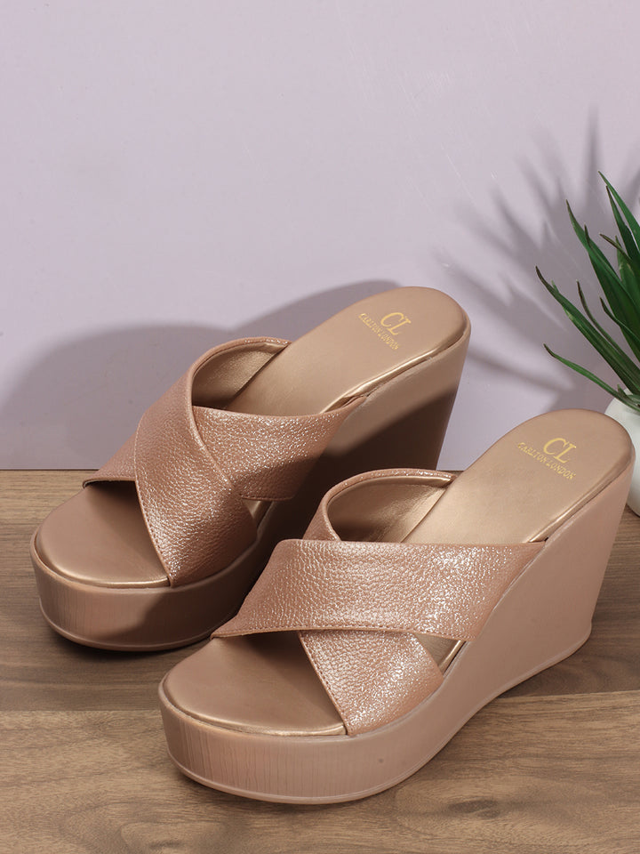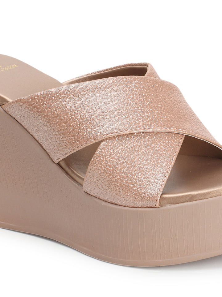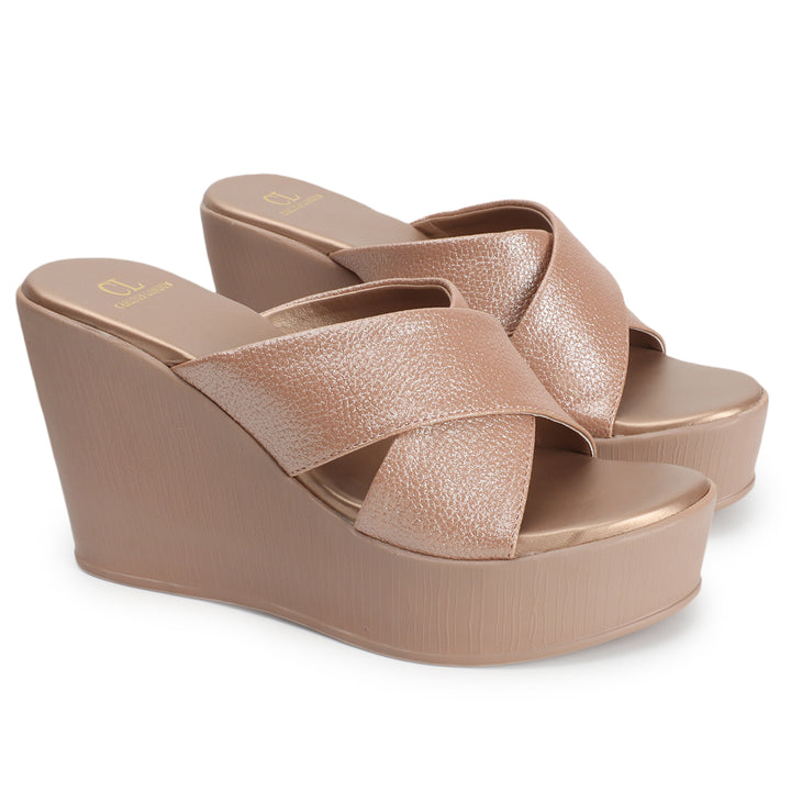 Step into sparkling style and comfort with these Women's Metallic Cross Strap Wedge Sandals Women's Designed for a fashionable yet relaxed look, these footwear The comfortable Perfect for warm weather, these versatile are ideal for casual outings, special events, or simply adding a touch to your everyday look.