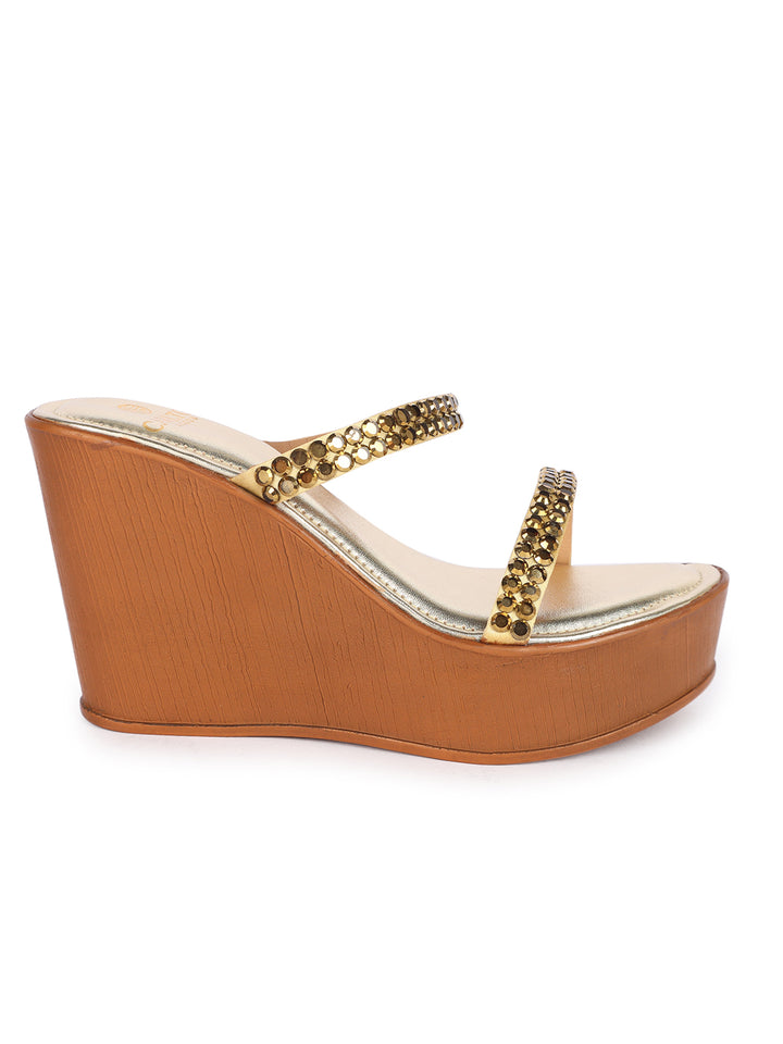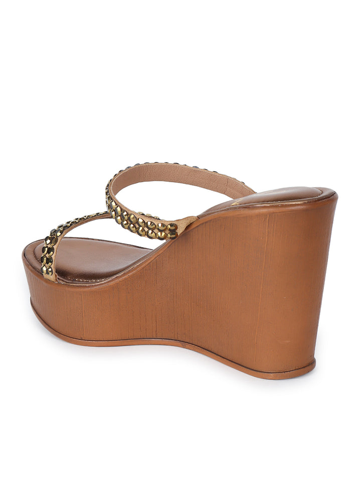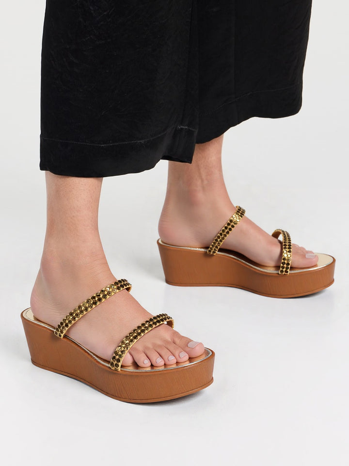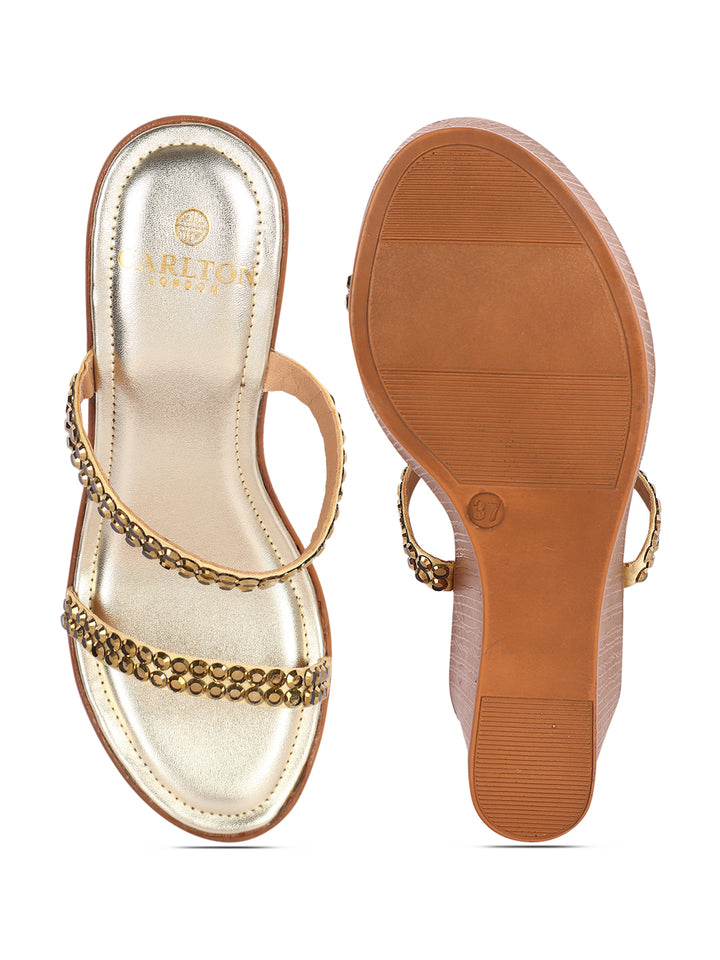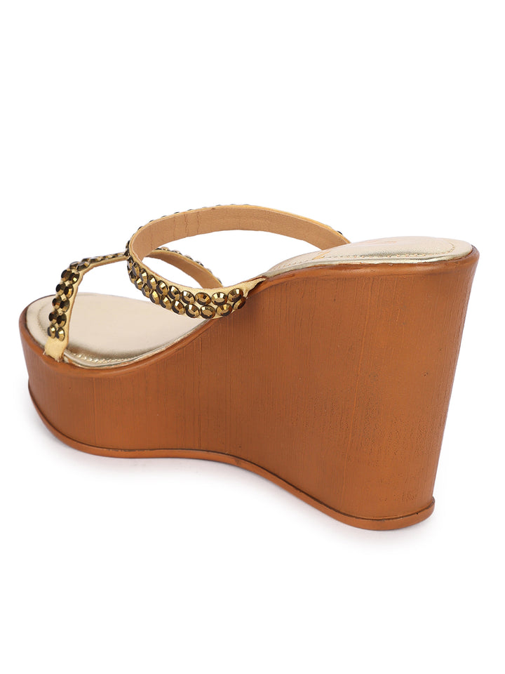 Women's Metallic Embellished Wedge Sandals