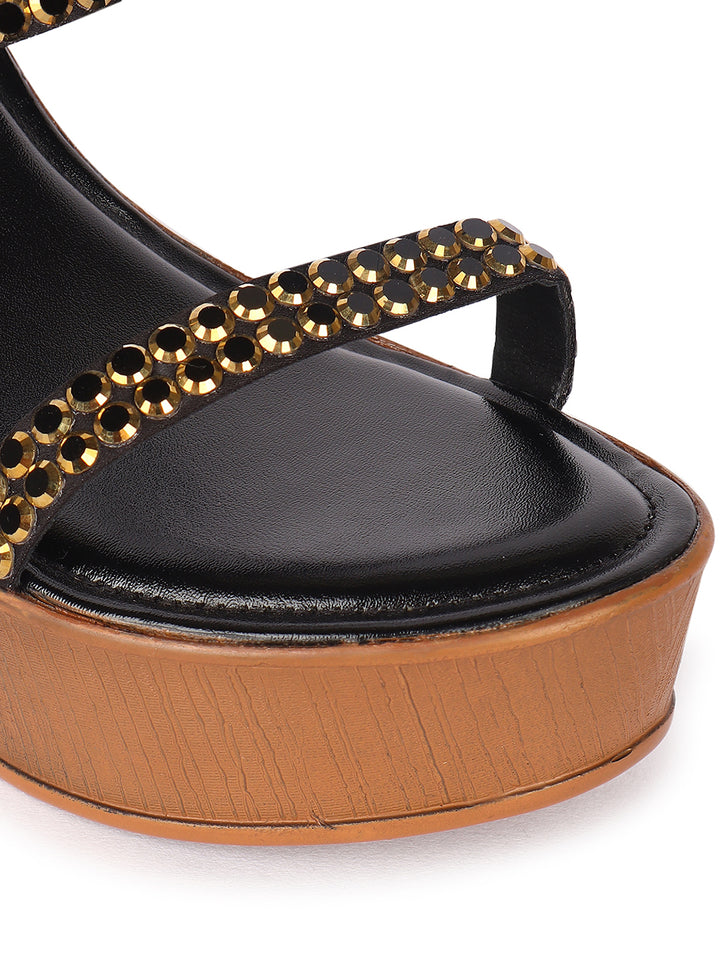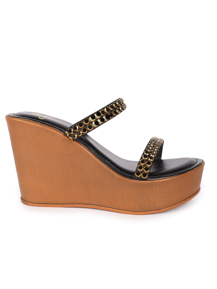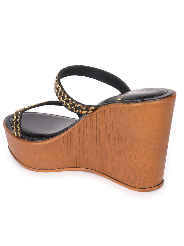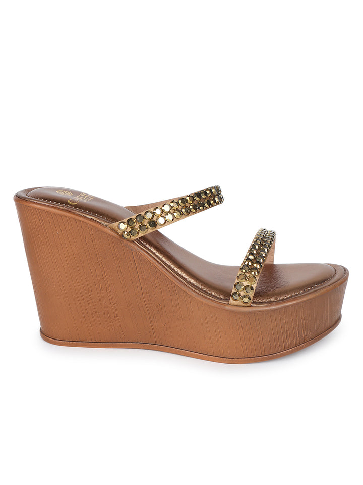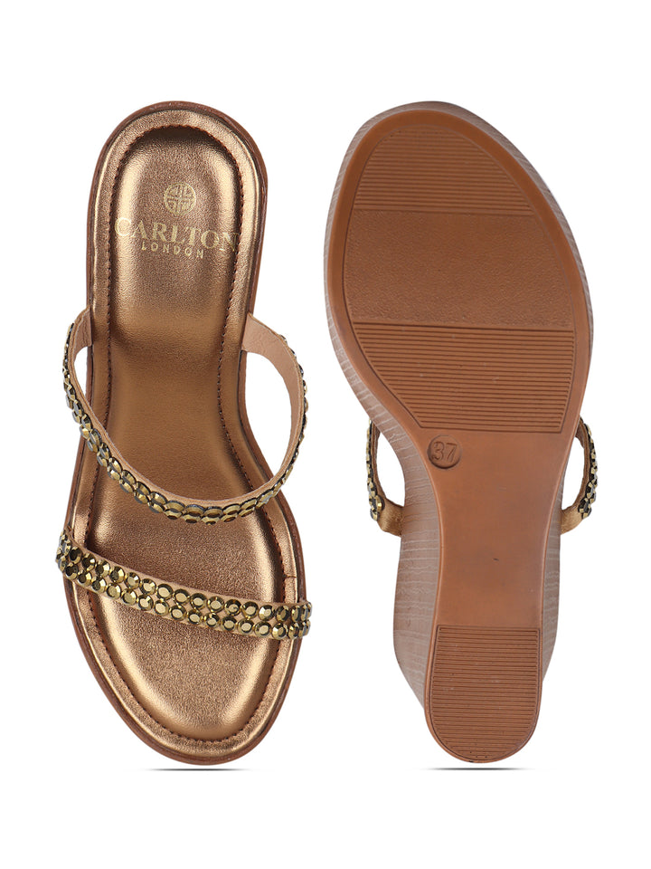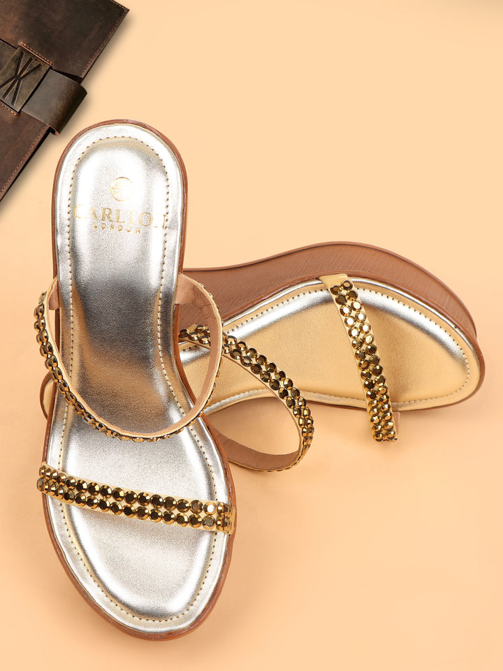 Women's Metallic Embellished Wedge Sandals