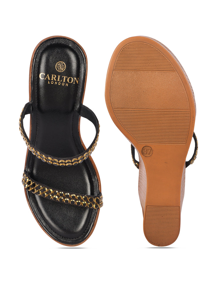 Carlton London Women's Metallic Embellished Wedge Sandals