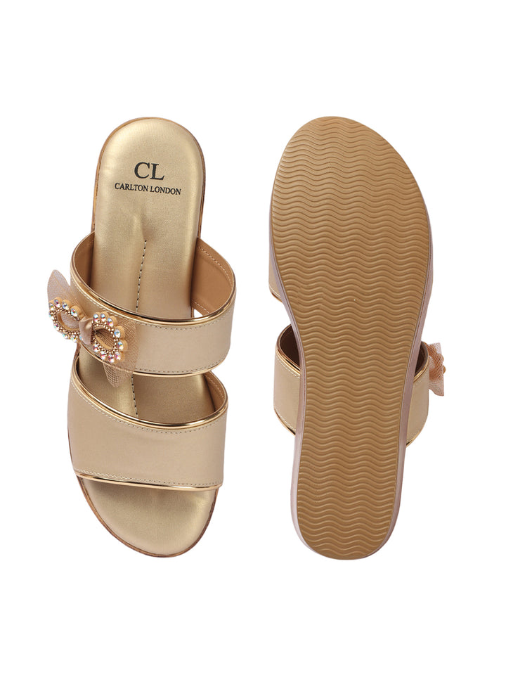 Carton London Women's Metallic Gold Embellished Wedge Sandals
